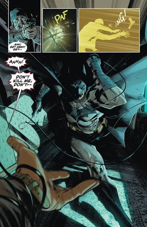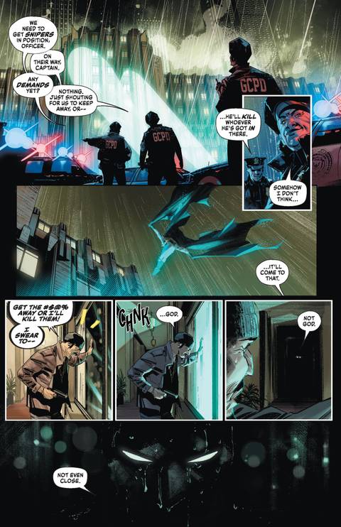 La DC Comics ha pubblicato cinque pagine di Batman #125. Il numero segna l’inizio di un nuovo team creativo alla guida della testata, composto dallo scrittore Chip Zdarsky e dall’artista Jorge Jiménez. Le pagine pubblicate sul blog della DC Comics mostrano Batman alle prese con degli ostaggi, e mette in scena le classiche tattiche del Cavaliere Oscuro: apparire dall’ombra, lasciare i criminali penzolanti da un edificio e altro ancora. Uno degli aspetti sconvolgenti delle pagine è che Batman non riesce a salvare gli ostaggi dall’uomo armato che è riuscito a premere il grilletto.