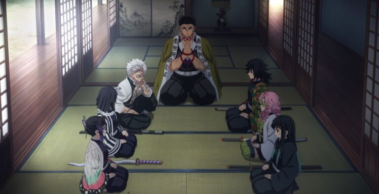 Infatti, subito dopo questi combattimenti, la nuova stagione fornisce agli spettatori una spiegazione verbale di ciò che sta per accadere. Nezuko ha conquistato il sole, il che porta Muzan Kibutsuji a volerla catturare. Tutti gli Hashira si riuniscono per pianificare le loro prossime mosse in guerra. L’intera scena fa un buon lavoro nello spiegare chiaramente agli spettatori qual è la situazione. Questo aggiornamento sulla posta in gioco è utile per gli spettatori che potrebbero aver dimenticato come sono andate le cose dopo l’ultima stagione.