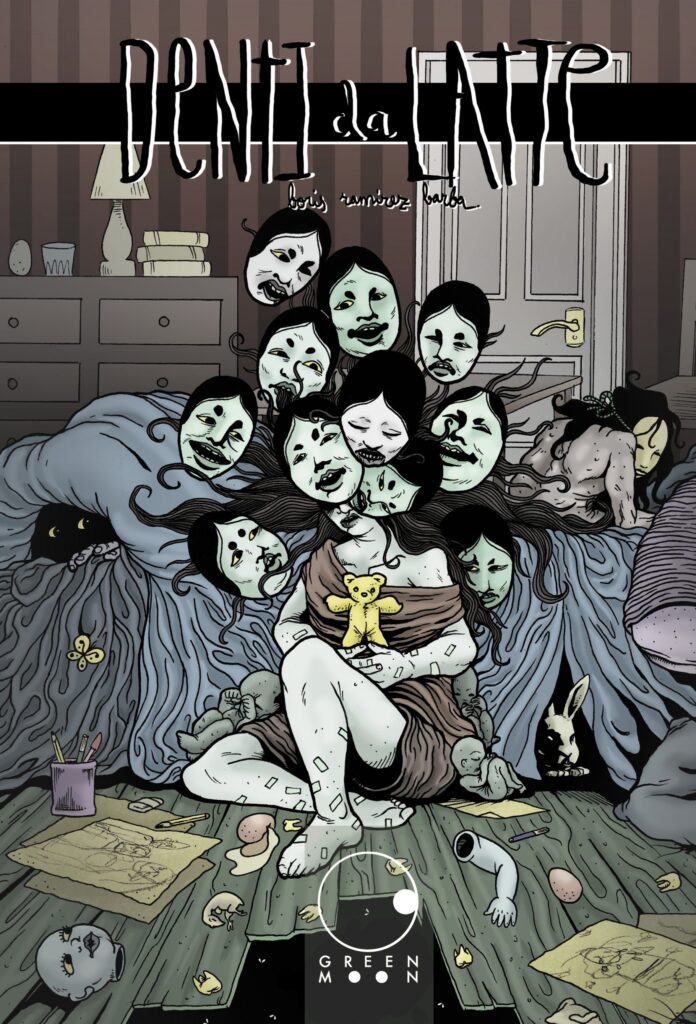 Insetti, un feto di pulcino divorato semi crudo, incubi, denti, maschere e neonati deformi. Sequenze oniriche lynchiane, un body horror degno del miglior Cronenberg e quel pizzico di guro nansensu nipponico che impreziosisce il tutto. Questo e molto altro in “Denti da latte” di Boris Ramirez Barba, edita da Green Moon Comics per la collana “Tundra”.