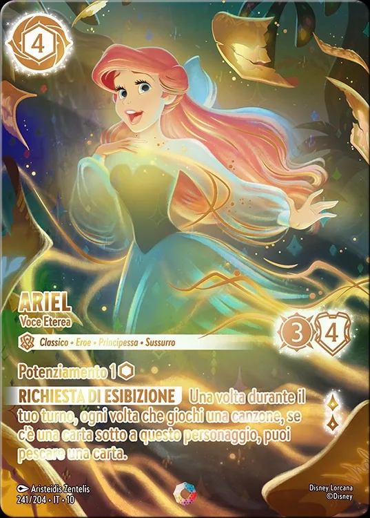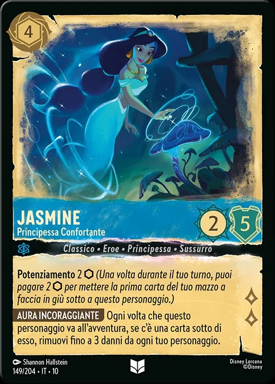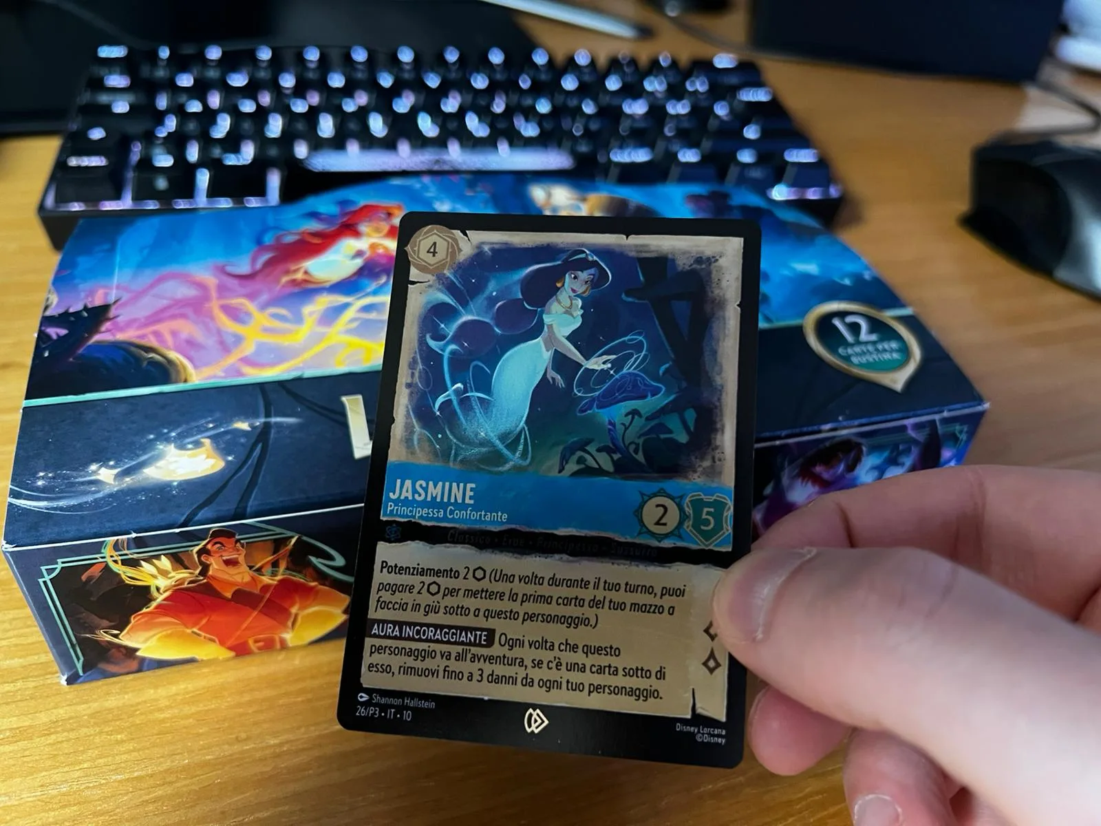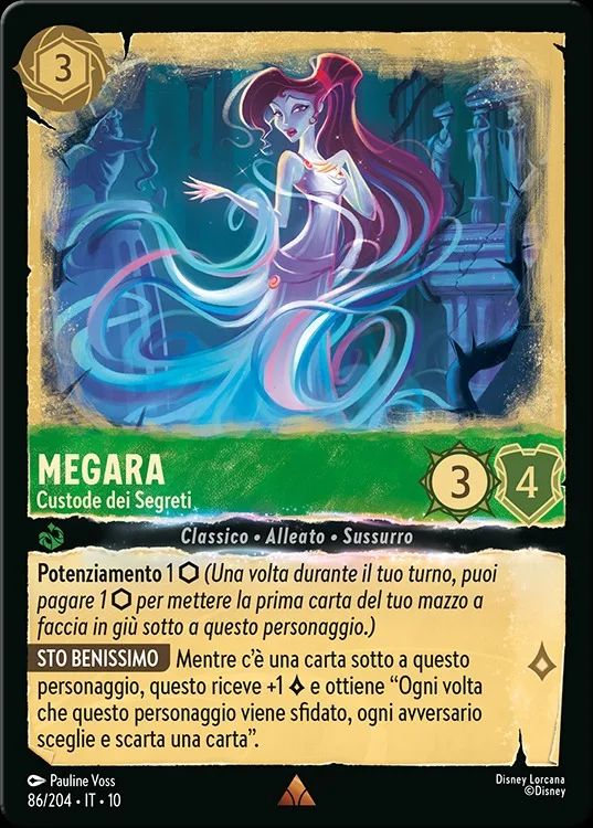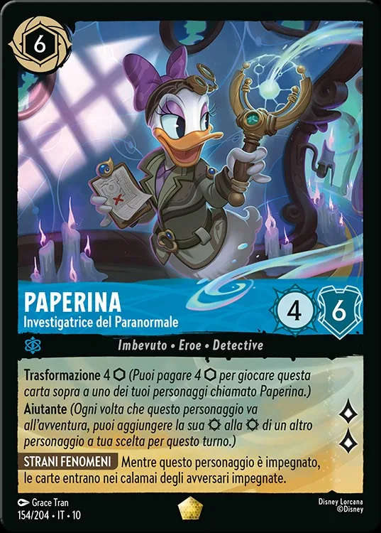 La novità che definisce il set è l’introduzione dei personaggi Sussurri e della parola-chiave Potenziamento (Boost): invece di essere “già fatti” quando entrano in gioco, questi personaggi crescono durante la partita impilando carte sotto di loro a costo d’inchiostro, sbloccando bonus di valori e abilità quando “nutriti” nel tempo. È una scelta di design che invita a pianificare con orizzonte medio, bilanciando il desiderio di accumulare carte sotto il personaggio con l’esigenza di restare reattivi alla pressione avversaria. L’idea è stata ribadita nelle anteprime e negli approfondimenti community, che parlano esplicitamente di una keyword Boost legata all’azione di porre carte coperte sotto il personaggio per potenziarlo.