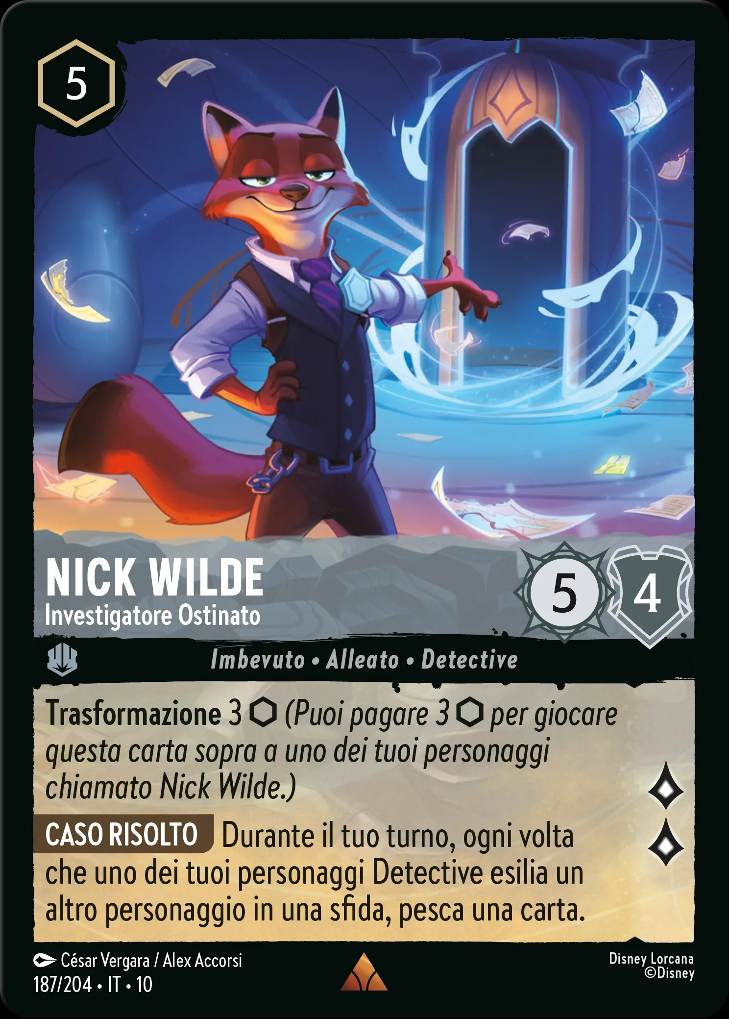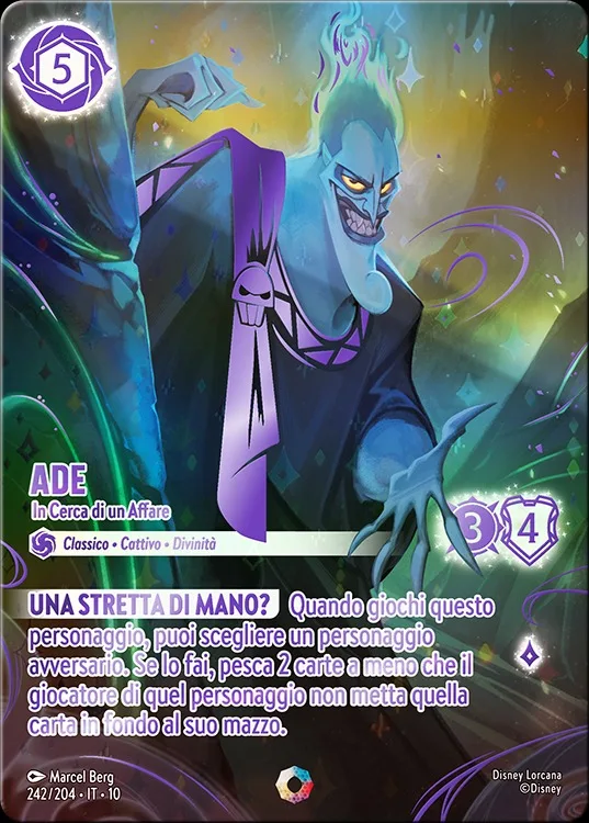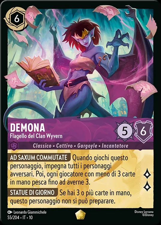 Il set pesca a piene mani nell’immaginario Disney, con un occhio attento ai fan dei ’90: l’arrivo dei Gargoyles – con Demona in testa – porta nel gioco personaggi dal carisma immediato e con meccaniche che strizzano l’occhio alla loro identità narrativa (le anteprime evidenziano abilità tematiche e artwork di forte impatto). A questi si affiancano volti da classici come Simba e antagonisti iconici quali Gaston e il regnante oscuro de “Taron e la Pentola Magica”, consolidando un mosaico che alterna eroi e villain in modo credibile per il meta e irresistibile per i collezionisti.