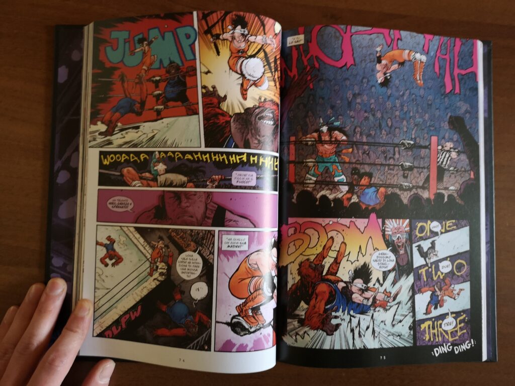 Do a powerbomb non è una storia sul wrestling, ma attraverso questo mondo costellato, anche nel mondo reale, di momenti importanti e decisivi per tantissime persone ha un messaggio ben preciso. Esattamente come Murder Falcon e Extremity dobbiamo leggere tutto il fumetto per arrivare all’importante messaggio che l’autore vuole trasmetterci: accettare la nostra vita. Non in senso globale, perché l’autore riesce a far capire quanto siamo in grado di cambiare, ma accettare le cose che accadono intorno a noi e sulle quali non abbiamo controllo. Daniel Warren Johnson eccelle nel lasciare questo tipo di messaggio e lo riesce a fare costantemente attraverso le sue passioni, come abbiamo potuto notare nei suoi lavori precedenti come creatore completo.
