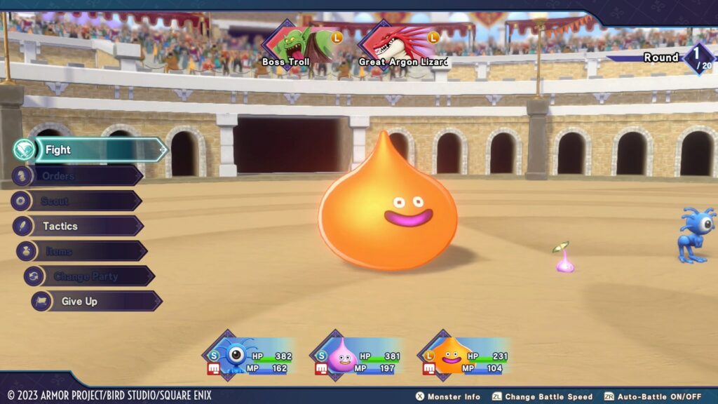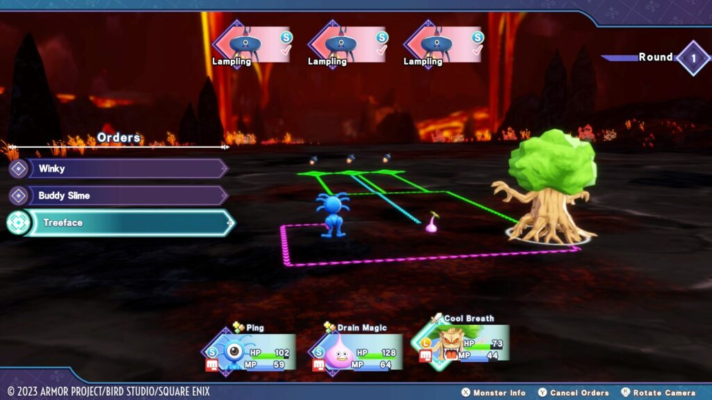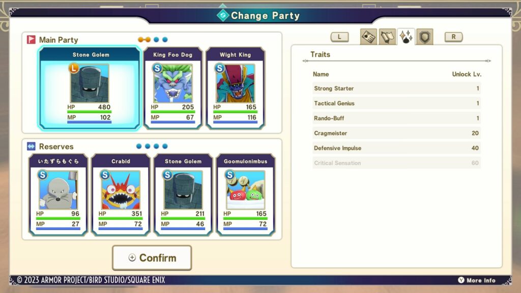 DRAGON QUEST MONSTERS: Il Principe oscuro incoraggia i giocatori a immergersi nelle battaglie strategiche del gioco, in cui è possibile impartire ordini precisi a ciascun mostro o stabilire delle tattiche generali, come “Attacco feroce” o “Guarigione”. Il party principale può essere composto da un massimo di otto mostri: quattro attivi in battaglie e quattro di riserva.