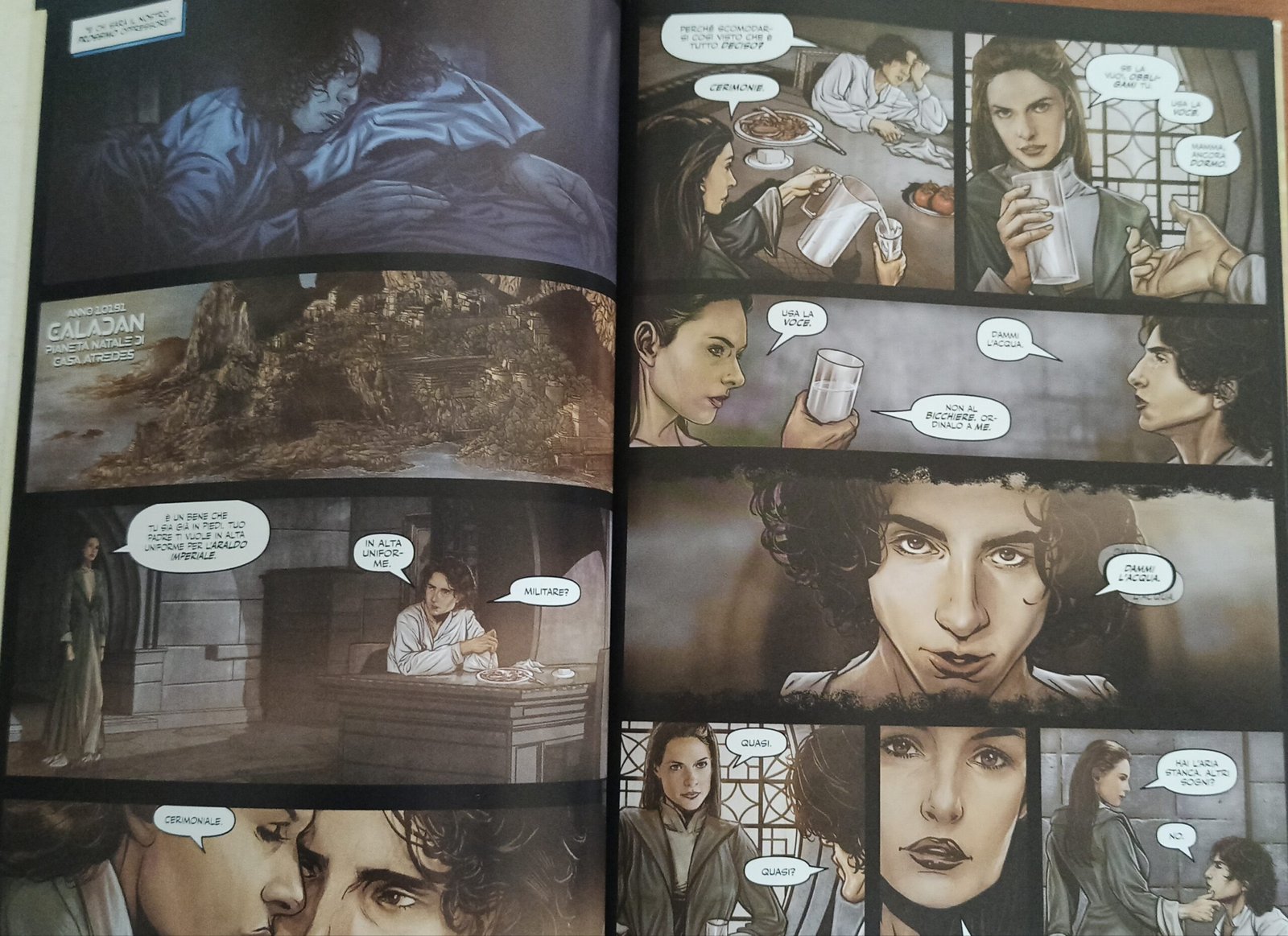 I piani dell’Imperatore si rivelano non più oscuri di quanto potessero sembrare e improvvisamente Casa Atreides si ritrova in rovina e quel poco che rimane si trova ora tra le mani di un inesperto Paul che cerca di trovare la propria strada. In Dune: Graphic Novel ufficiale del film, il viaggio che affronta Paul è pressoché lo stesso che è possibile osservare nella pellicola di Villenueve, a differenza di una ritmica che a volte sembra incepparsi e che potrebbe risultare difficile da comprendere per chi non ha guardato il film.