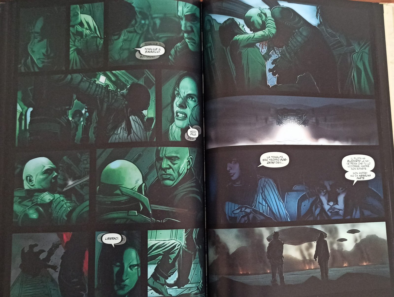 Dune: Graphic novel ufficiale del film è un volume unico che narra strettamente gli avvenimenti della pellicola di Villenueve adattandoli sulle tavole. Il ritmo a volte sembra incepparsi ma con un innovativo modo di usare vignette e balloon, per passaggi complicati da adattare direttamente dal film che con questo volume possiede ancora più contenuto grazie a piccoli approfondimenti e mini biografie degli autori che hanno contribuito alla realizzazione. E in fondo, troveremo delle illustrazioni che saranno un piacere per gli occhi di tutti i fan.