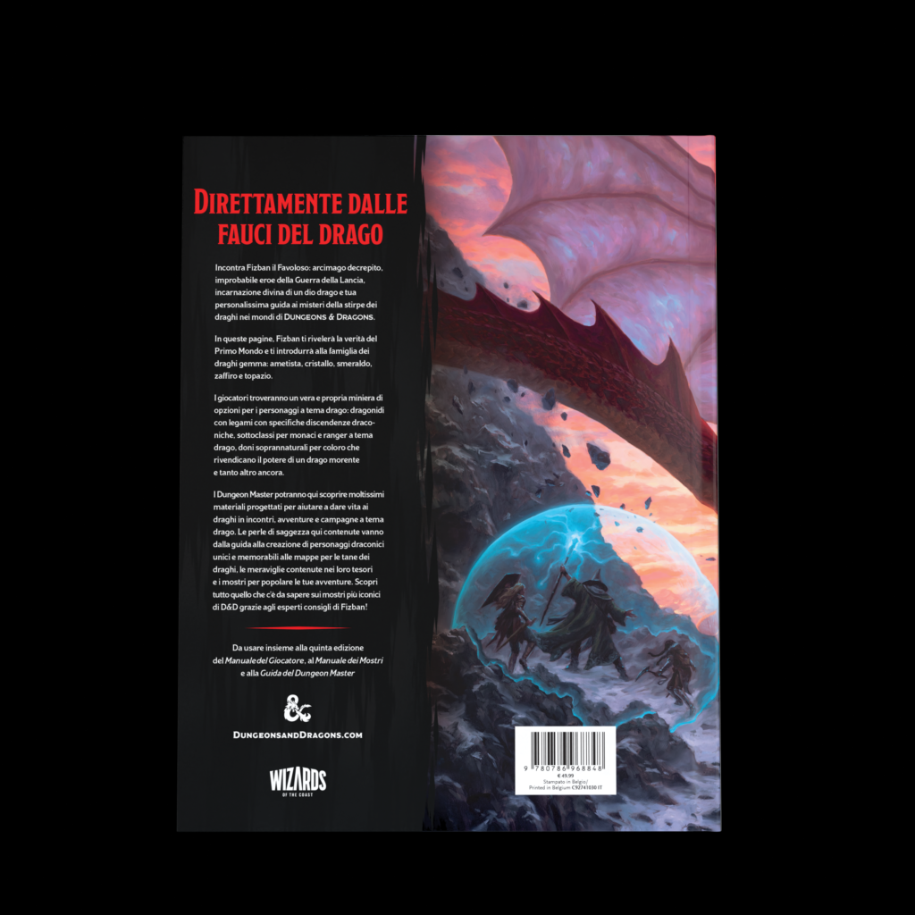 - Tutto ciò di cui un Dungeon Master ha bisogno per creare avventure ispirate ai draghi nei mondi di D&D, con nuove mappe delle tane dei draghi e dettagli su 20 diversi tipi di draghi.