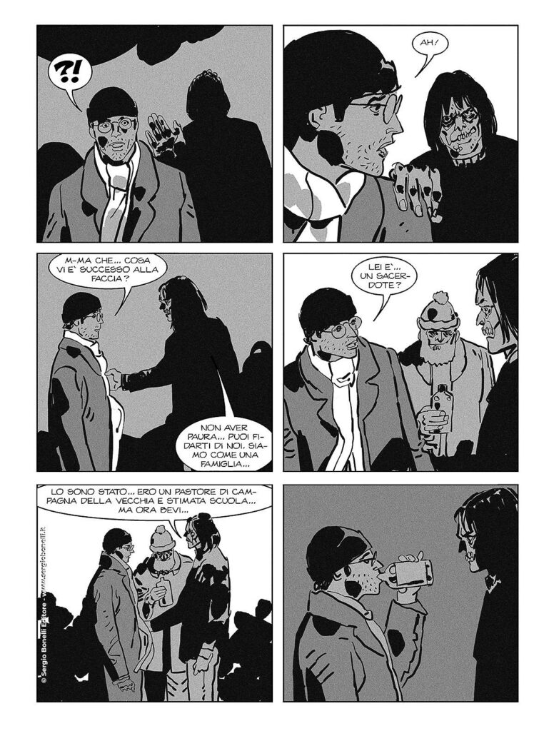 Tutta la storia sembra immersa in un limbo tra la realtà e l’irrealtà. Dylan vi si muove cercando di capirne di più su questo fantomatico Predicatore e la divinità con la quale questi interloquisce. Le vicende, anche qui, si intersecano con il passato dell’oldboy ed in particolare la sua parentesi da alcolista. I disegni sono essenziali e tipici di Pontrelli, forse non apprezzabili da tutti.