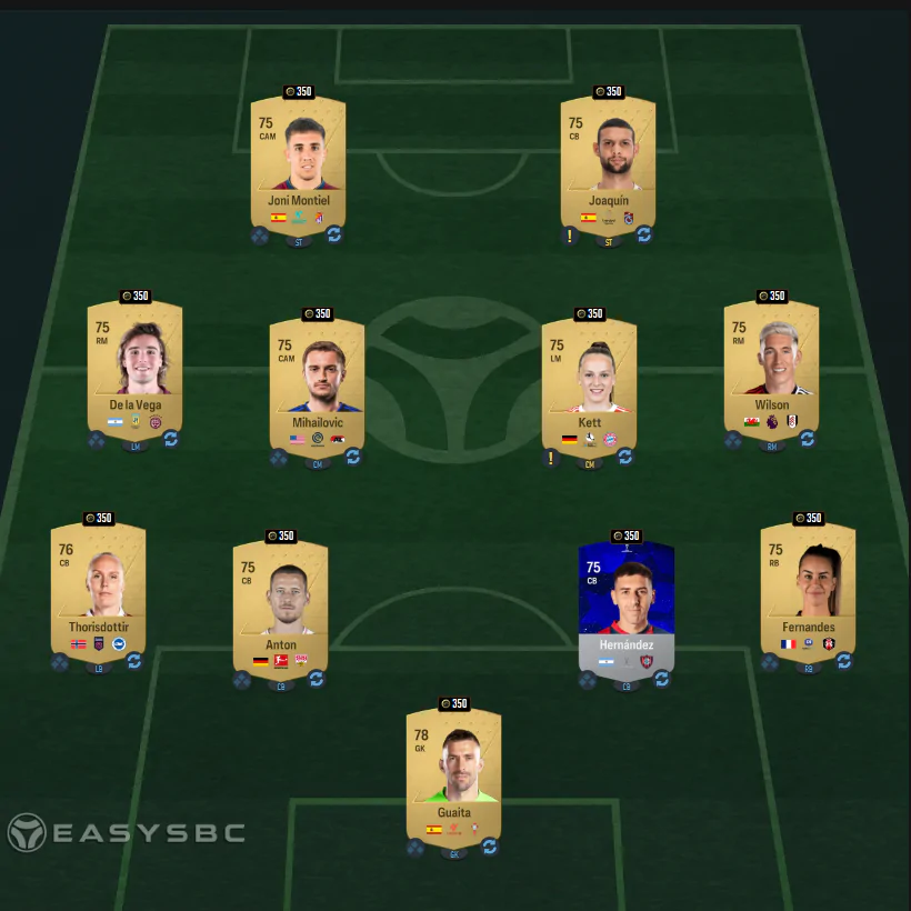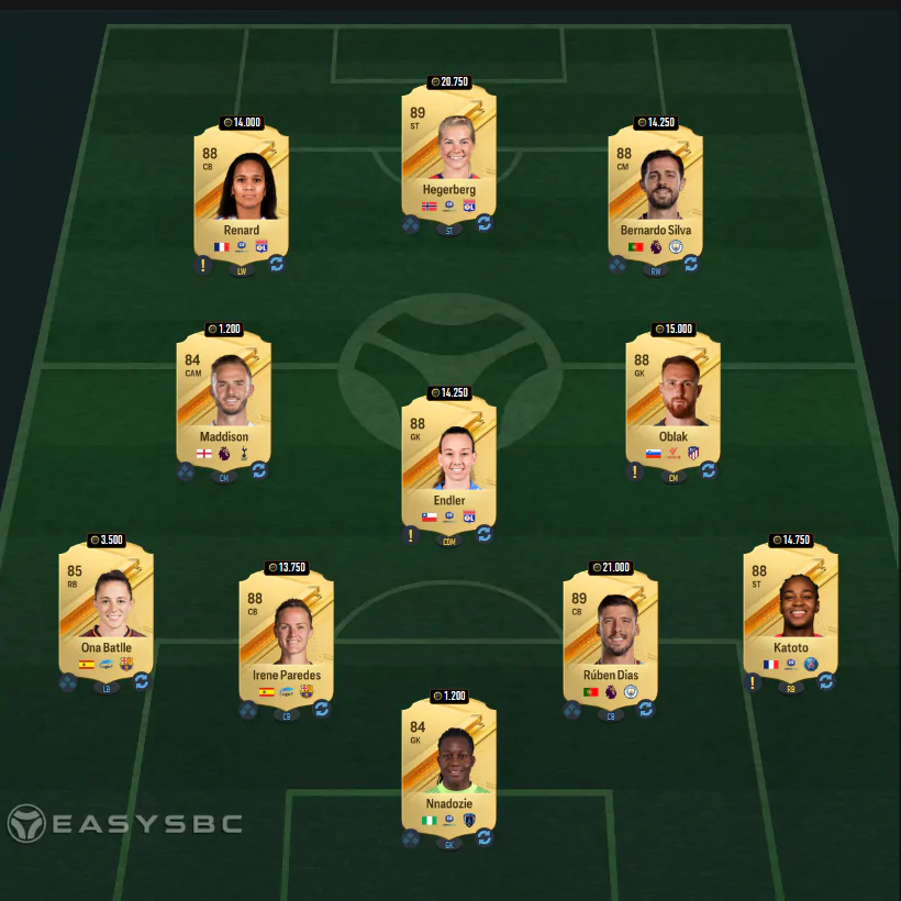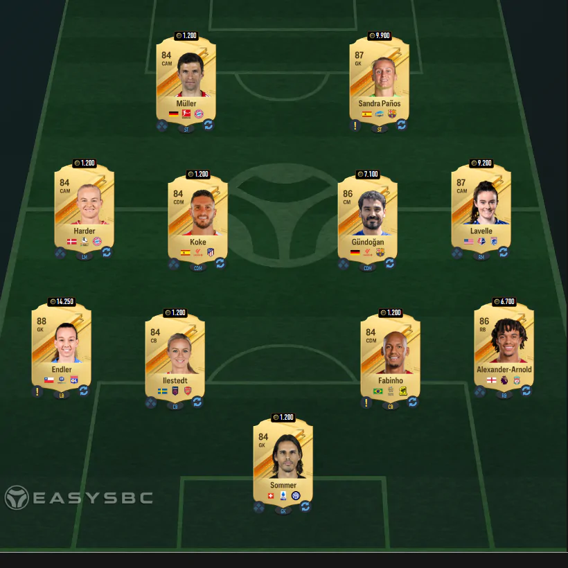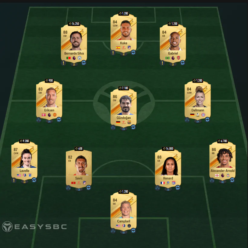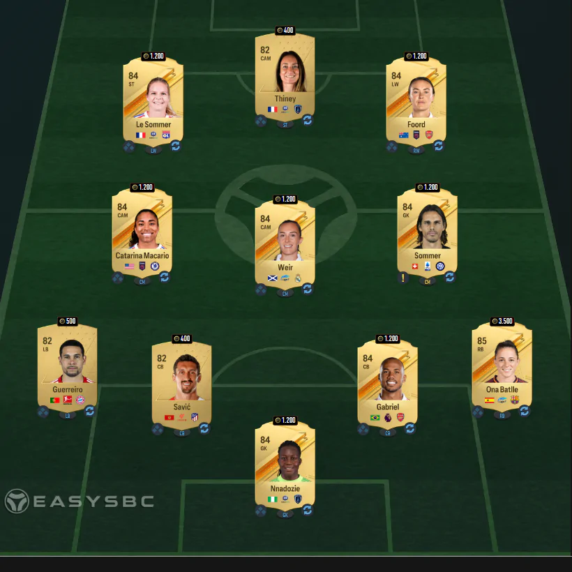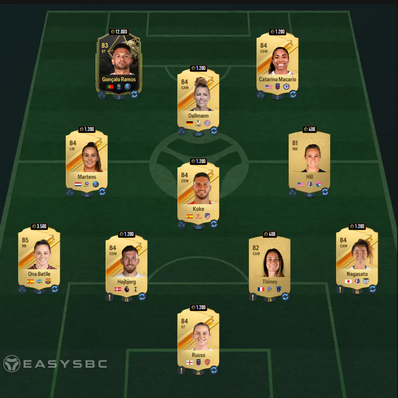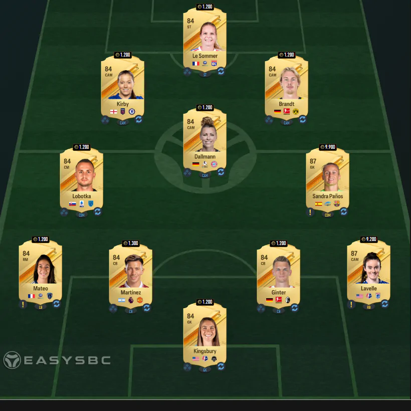 Per superare la quarta sfida dovremo inserire una rosa con media pari ad 84 che comprenda almeno un giocatore/una giocatrice del Real Madrid. Ecco il solito consiglio easysbc.io.
