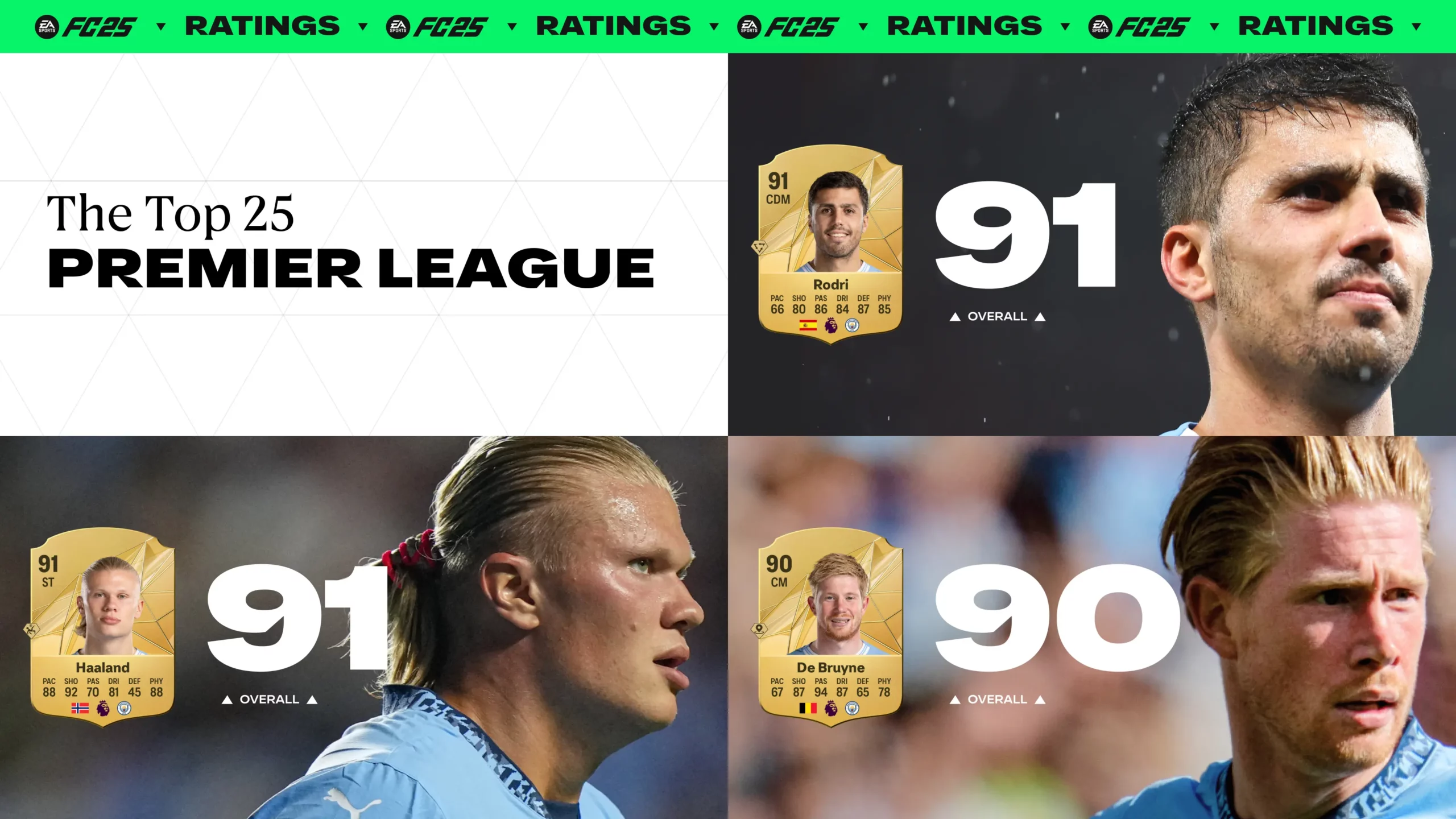 EA Sports ha rivelato le valutazioni dei giocatori e delle giocatrici della Premier League, permettendo di dare una prima occhiata alla serie completa di talenti e di statistiche in EA Sports FC 25. Giocatori come Haaland, De Bruyne e Rodri non potevano non entrare in questa particolare classifica, così come Sam Kerr e l’italiana Alessia Russo dovevano fare parte di questa particolare classifica al femminile. Scopriamo insieme tutti i nomi e le loro valutazioni.