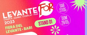 Sabato 27 e domenica 28 maggio alla Nuova Fiera del Levante di Bari viene inaugurata LevanteFOR, la prima edizione della nuova fiera pugliese dedicata a cultura pop, fumetti, cosplay e tutto quello che appartiene alla galassia nerd. Edizioni BD & J-POP Manga non potevano mancare a questo appuntamento e partecipano alla kermesse con tante anteprime e novità disponibili in stand (Stand 01) e diversi autori ospiti!
