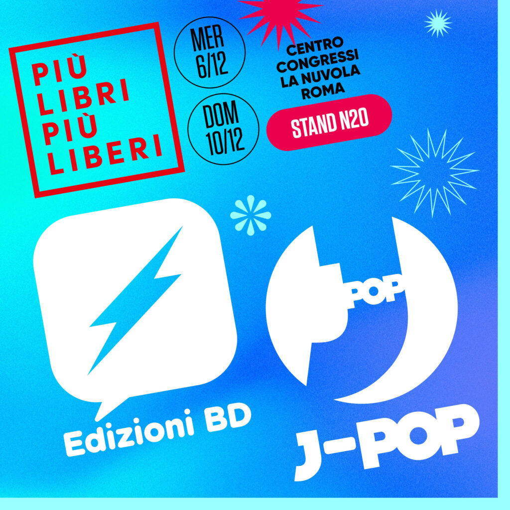 Edizioni BD e J-POP Manga partecipano alla 22° edizione della fiera nazionale Più Libri Più Liberi, l’atteso appuntamento romano dedicato alla piccola e media editoria. La manifestazione avrà luogo a Roma dal 6 al 10 dicembre all’interno dei grandi spazi del Centro Congressi La Nuvola a Roma Eur. La casa editrice milanese sarà presente con numerosi ospiti e novità presso lo Stand N20.