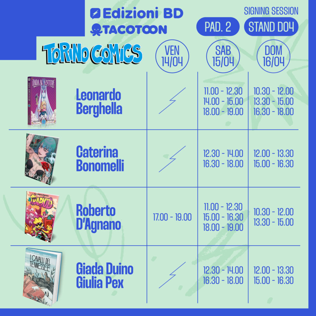 Dal 14 al 16 aprile Edizioni BD & J-POP Manga saranno al Lingotto Fiere di Torino in occasione di Torino Comics! La casa editrice milanese avrà il proprio stand nel Padiglione 2 in posizione D04. Oltre a La Conquista del Cielo, Ottoman, Dandadan, Insomniacs After School, Il mistero di Ron Kamonohashi, La Nave di Teseo, House of Slaughter 2 e tutte le altre novità del momento ad aspettarvi ci saranno diversi autori ospiti. Incontreranno i lettori in fiera Caterina Bonomelli, autrice dell’urban fantasy Sottopelle, Leonardo Berghella autore, insieme ad Alessandro Starace, del manga italiano Dada Adventure, Roberto D’agnano, autore di Trapkid, e Giulia Pex e Giada Duino, autrici del racconto generazionale I Cavalli del Tennessee.