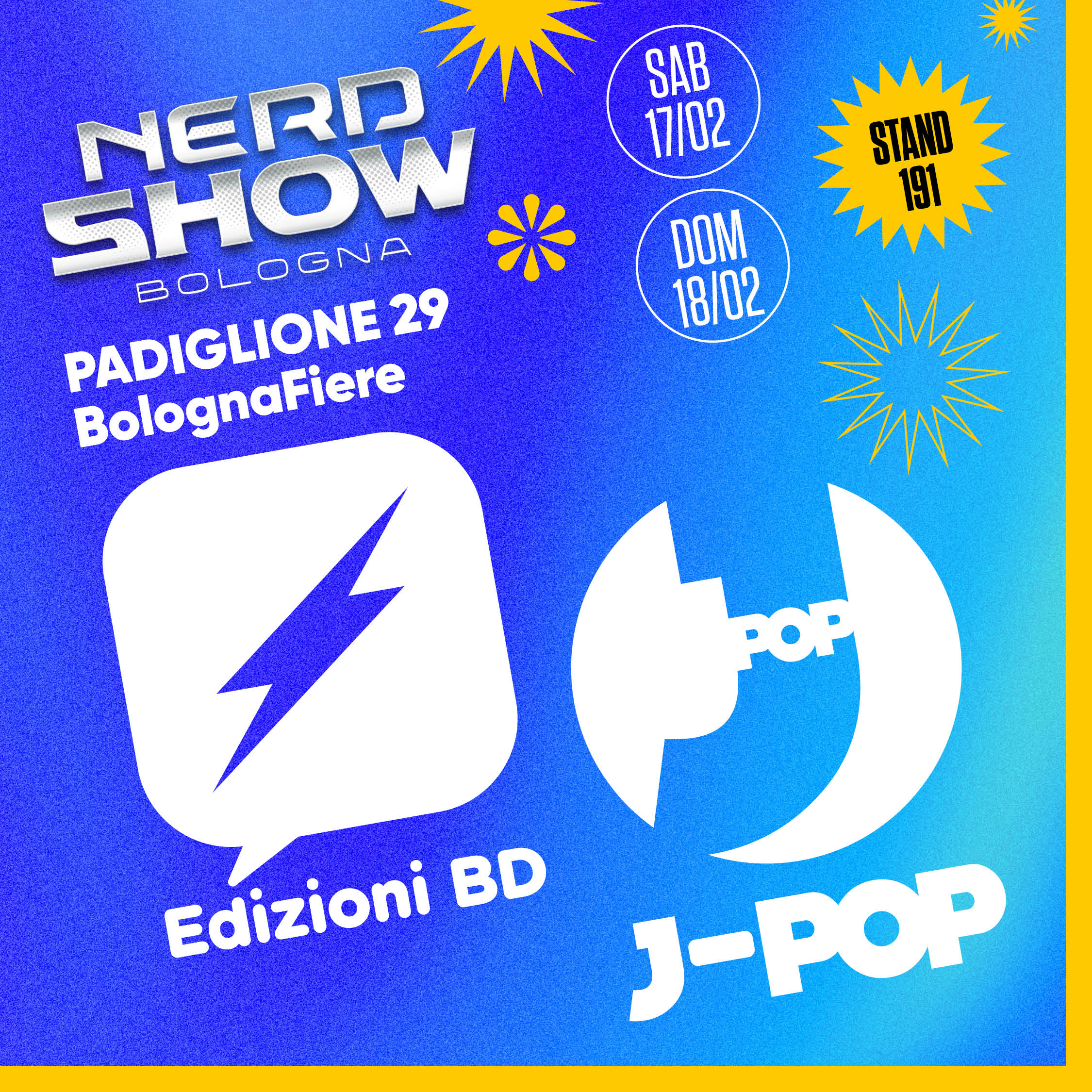 Sabato 17 e domenica 18 febbraio Edizioni BD e J-POP Manga partecipano alla manifestazione allo stand 191 del Padiglione 29 con molte novità e diversi ospiti in firma.