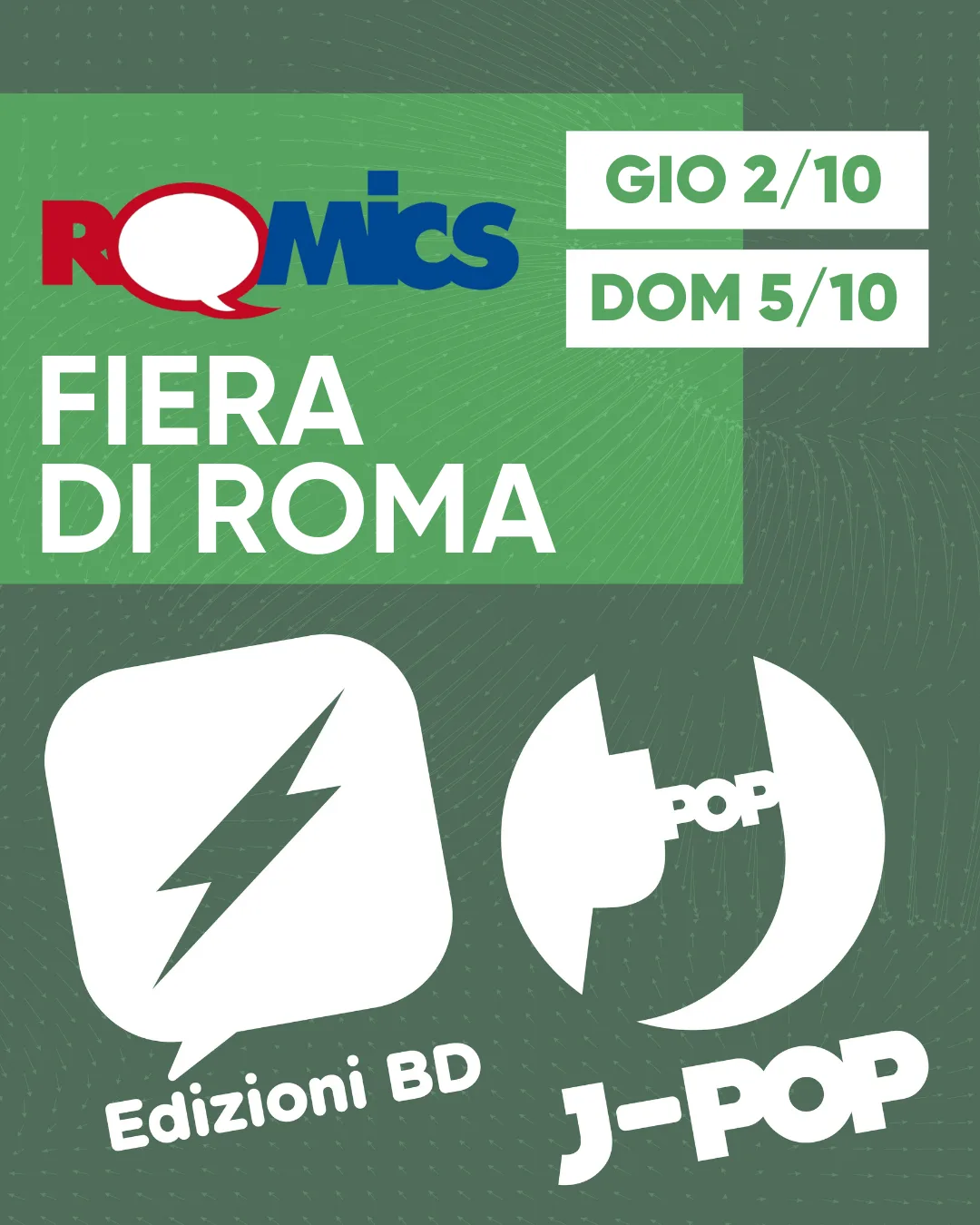 Manca poco all’inizio della 35° edizione di Romics! Ci si prepara a un weekend ricco di divertimento per lettori, cosplayers, gamers e collezionisti nei padiglioni della Fiera Roma. Dal 2 al 5 ottobre Edizioni BD & J-POP Manga vi aspettano alla manifestazione presso lo stand D7 del Padiglione 7 con tante novità da batticuore lato J-POP e importanti firme per la parte BD tra cui una ospite internazionale!