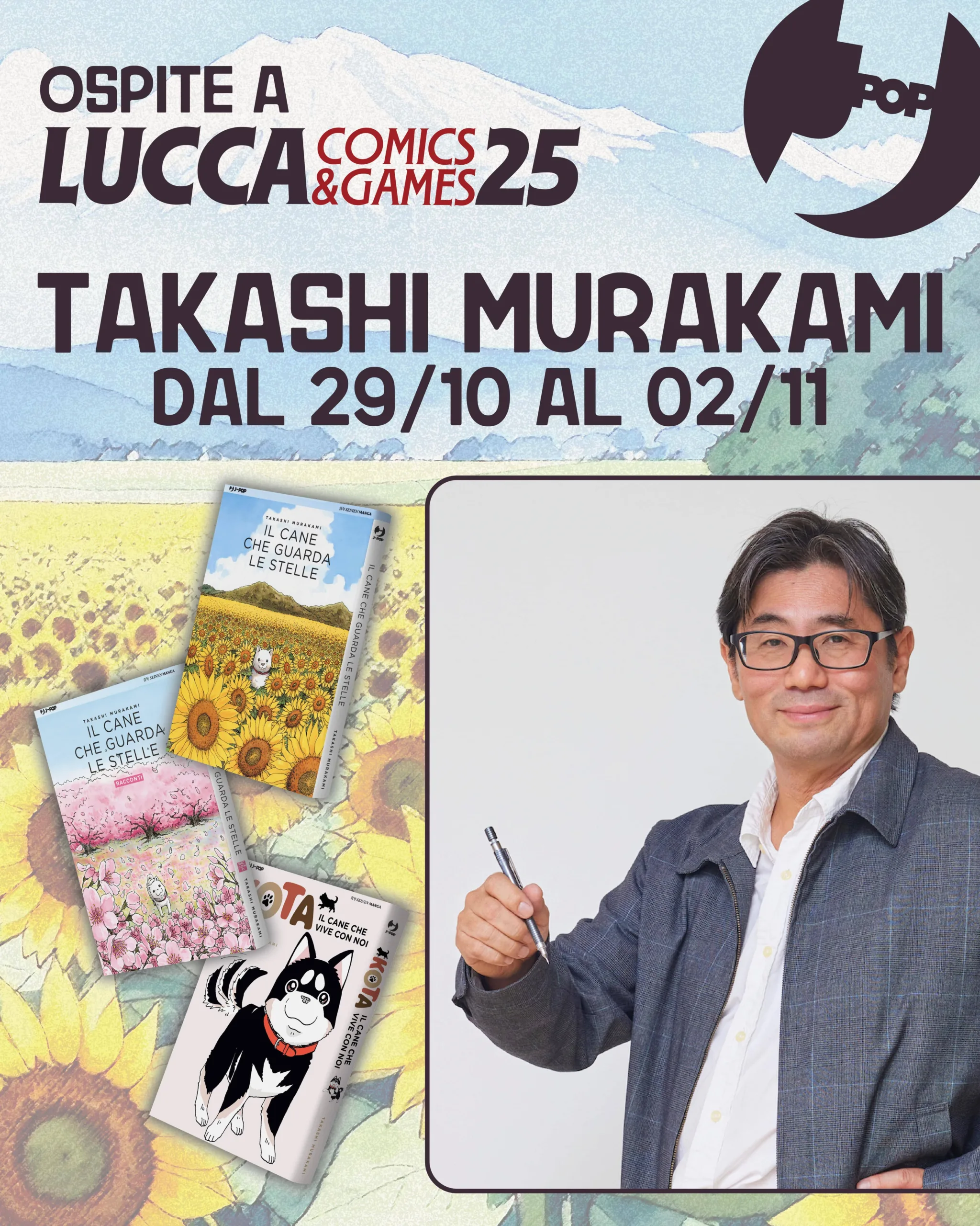 Dopo aver vinto il Premio Speciale “Librerie Feltrinelli” a Lucca Comics & Games 2016, sarà finalmente in Italia dal Giappone, ospite di J-POP Manga, una delle firme più interessanti del panorama manga seinen contemporaneo: Takashi Murakami. Nato a Osaka nel 1965, l’autore ha raggiunto il successo in Italia con Il cane che guarda le stelle, toccante racconto sul legame tra un uomo e il suo cane, pubblicato originariamente dall’editore Futabasha tra il 2008 e il 2009 e adattato in un film live action nel 2011. In Italia il titolo è edito da J-POP Manga, insieme al suo seguito Il cane che guarda le stelle – Racconti e a Kota. Il cane che vive con noi. Nel corso della sua carriera ha ricevuto numerosi riconoscimenti, tra cui il Premio di Eccellenza al Japan Media Arts Festival.