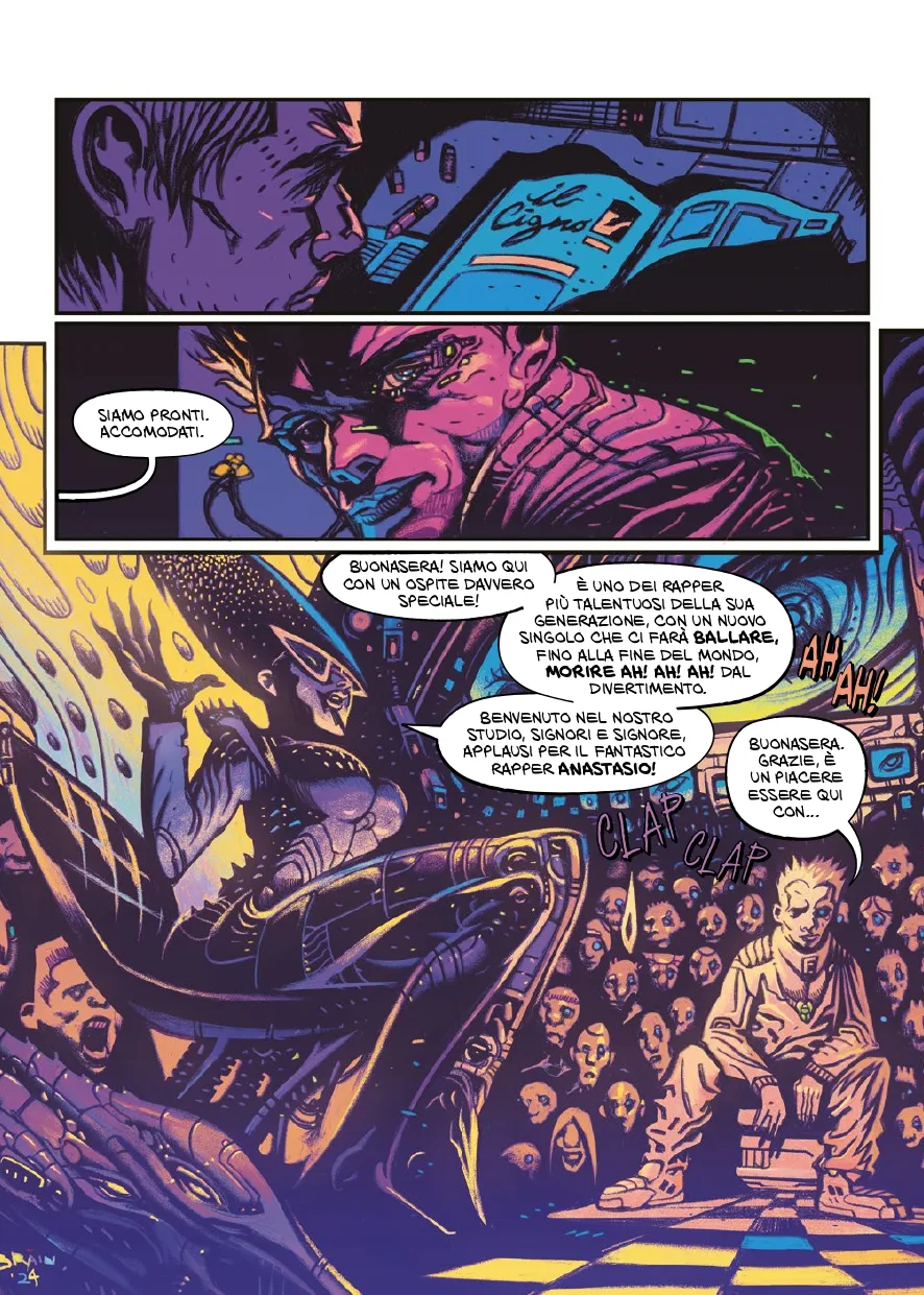 Il rapper e cantautore Anastasio, vincitore della XII Edizione di X Factor e doppio disco di Platino, torna a calcare i palchi con il nuovo album Le Macchine Non Possono Pregare. Non si tratta solo di un album musicale, ma di un progetto di più ampio respiro che comprende anche una graphic novel dallo stesso titolo edita da Edizioni BD e realizzata insieme a Davide Nota ed Egidio Matinata con i disegni di Arturo “Dr Brain” Lauria. Un progetto che l’artista campano ha definito “Un sogno, l’album che renderebbe fiero il ragazzino che ero”. Album e graphic novel compongono un’opera unica o meglio quella che Anastasio ama chiamare un’opera rap, una sinergia tra musica e fumetto dove i testi delle canzoni si intrecciano alle immagini creando una storia visionaria che unisce distopia, cyberpunk e poesia.