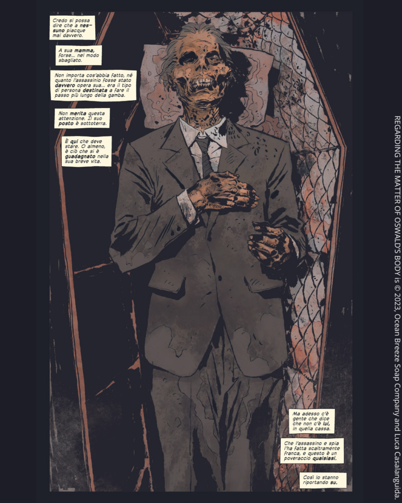 In occasione dell’anniversario dei sessant’anni dall’omicidio Kennedy, Edizioni BD dà alle stampe Oswald. Il problema del cadavere dell’assassino di Christopher Cantwell con i disegni dell’artista italiano Luca Casalanguida. All’ombra della più grande e misteriosa cospirazione della storia americana, prende forma un thriller mozzafiato ispirato a una delle teorie più bizzarre legate al caso Kennedy…