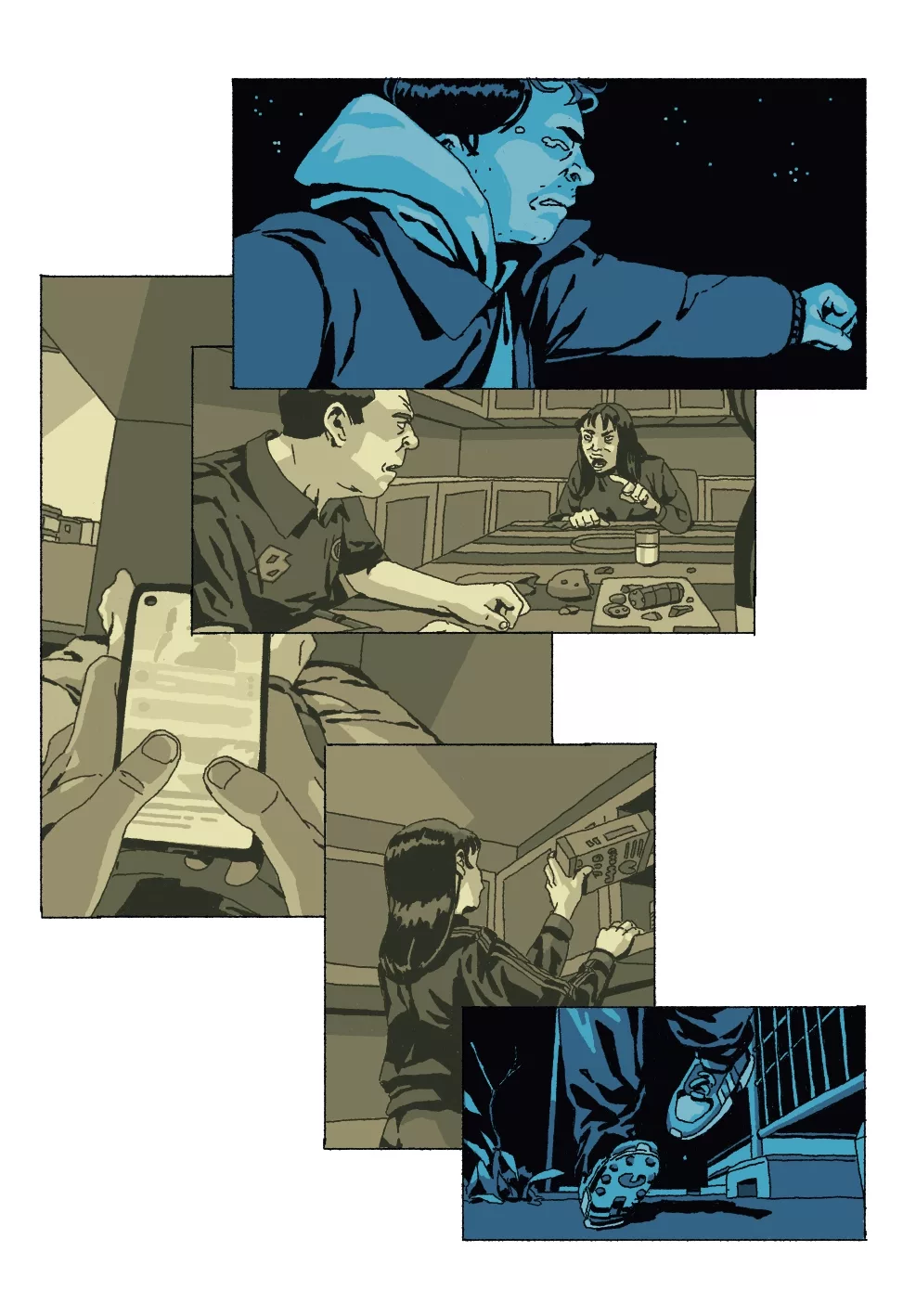 Con uno stile di disegno graffiante e una regia già solida, in parte ispirati dall’arte di grandi maestri come Taiyo Matsumoto e Chris Ware, Marco Checchin mette in scena un dramma familiare che è anche storia di formazione e specchio dei dubbi e della ricerca di futuro della generazione Z.