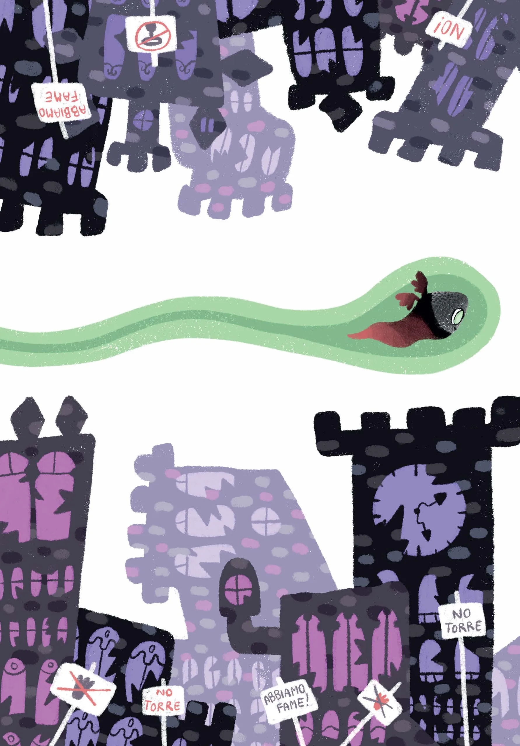 In un mondo esausto e immobile, una gigantesca torre si erge fino alla luna: un luogo misterioso dove un’élite di tiranni governa indisturbata mentre tutto il resto del pianeta cade in rovina. Un giorno, un’ingenua fragolina riceve per errore una lettera destinata a qualcun altro e, non sapendo leggere, ne fraintende il contenuto e si convince di dover compiere una missione eroica. Inizia così una scalata assurda e pericolosa verso il vertice della torre, tra segreti, pericoli e incontri inaspettati, giochi di potere e ribellioni sotterranee… perché anche l’essere più piccolo può cambiare il destino del mondo!