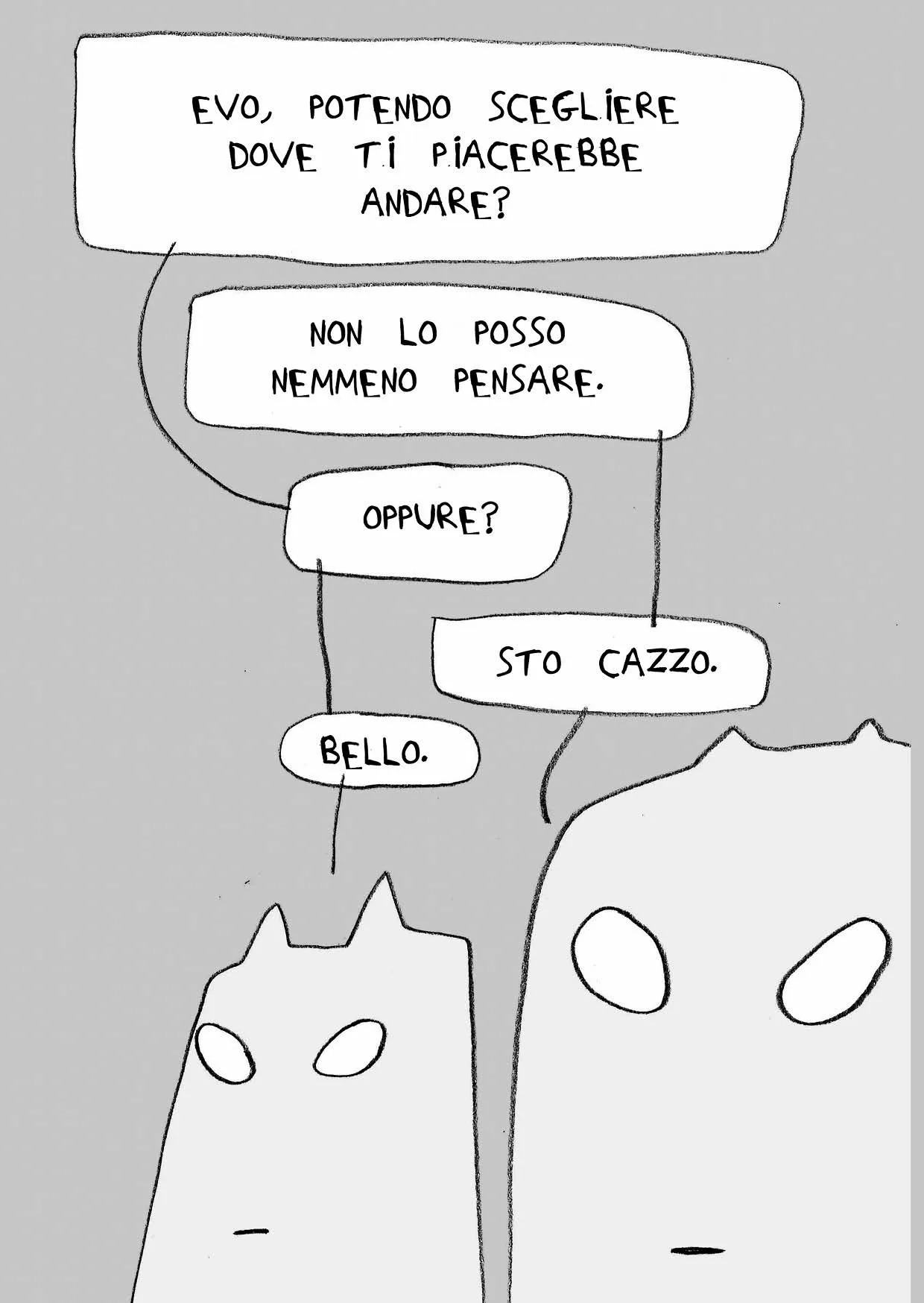 “Ho preso dei fogli e ho iniziato a disegnare la noiosa vita di questi due cosini che blaterano nel nulla.”