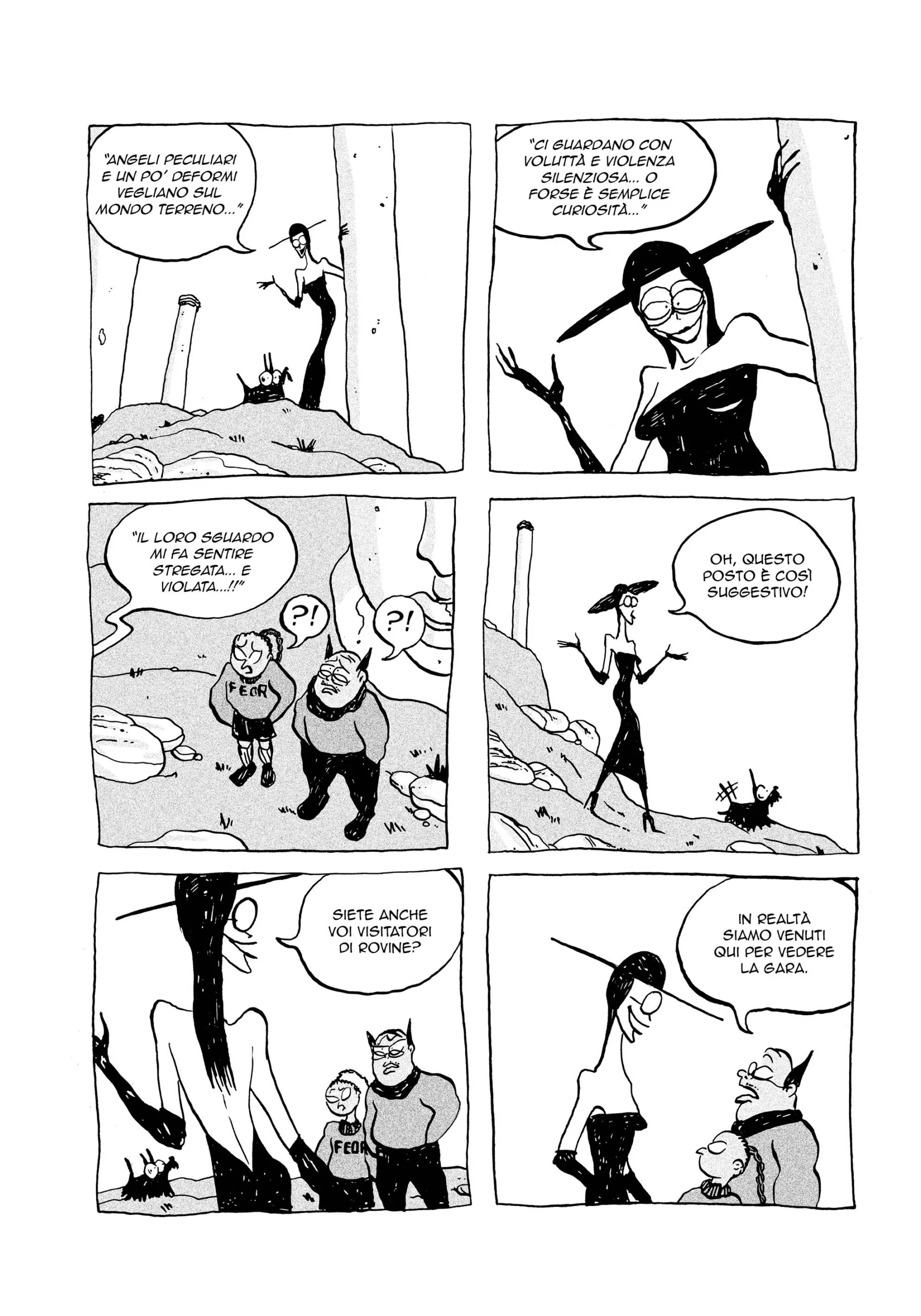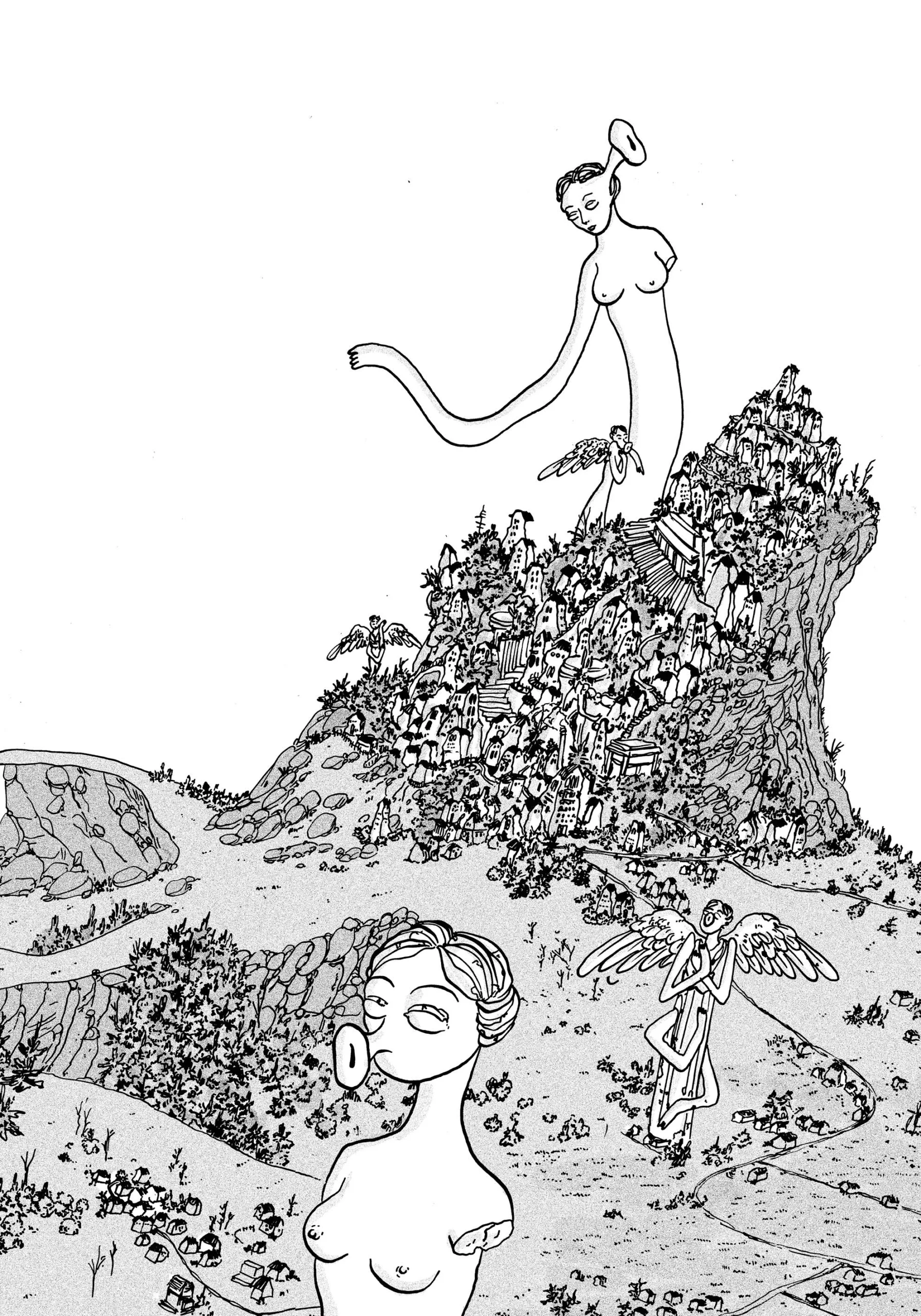 Una commedia corale, un romanzo a fumetti complesso e sorprendente per le invenzioni che contiene, un piccolo e personale mondo narrativo raccontato con brillante black humor per svelare la solitudine e la fragilità delle relazioni umane. Il segno grafico netto e pulito dell’autrice riesce a trovare la sintesi nel suo immaginario ricco di particolari, dalla caratterizzazione dei personaggi ai paesaggi surreali costellati di statua deformi, sempre così irrealisticamente reali.