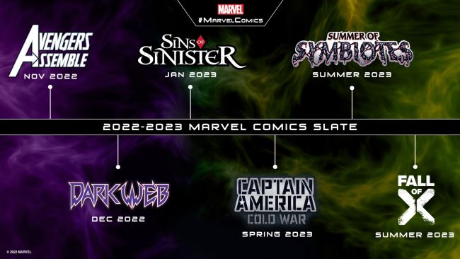 La rivelazione è avvenuta nell’ambito di una mappa dei prossimi eventi che annunciava anche la storia “Summer of Symbiotes“. Insieme al titolo “Fall of X“, la Marvel offre un’anticipazione: