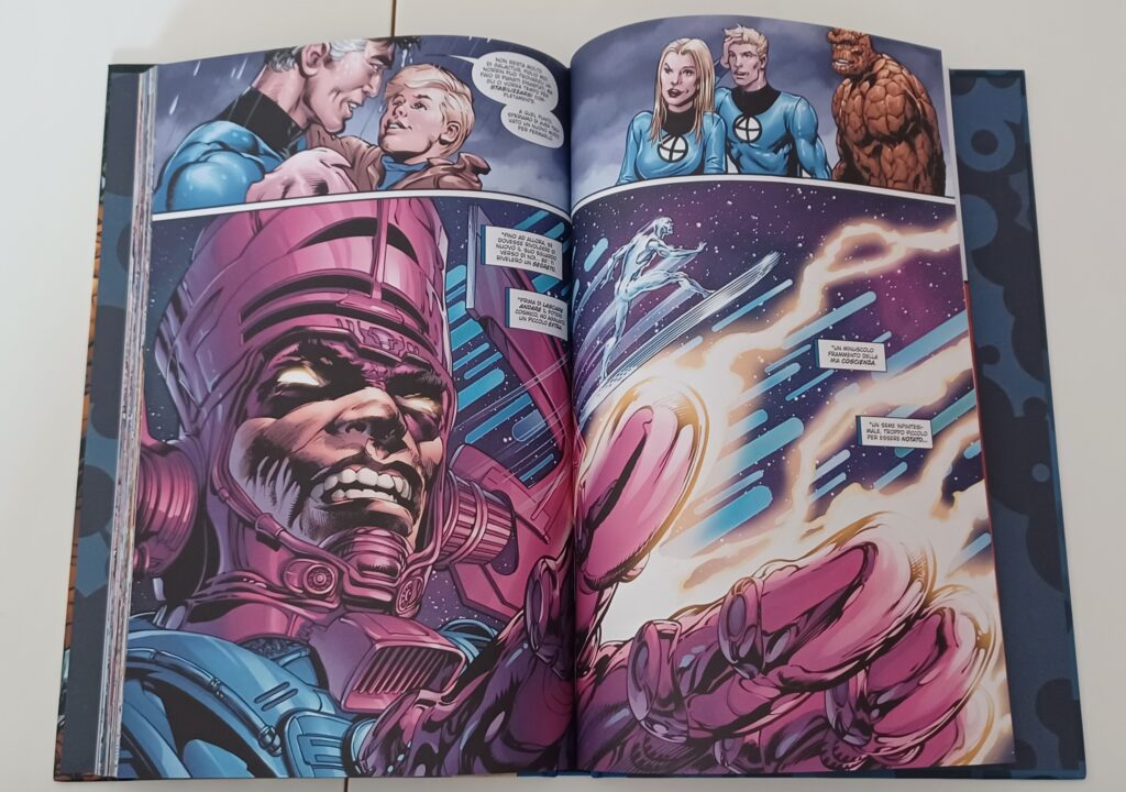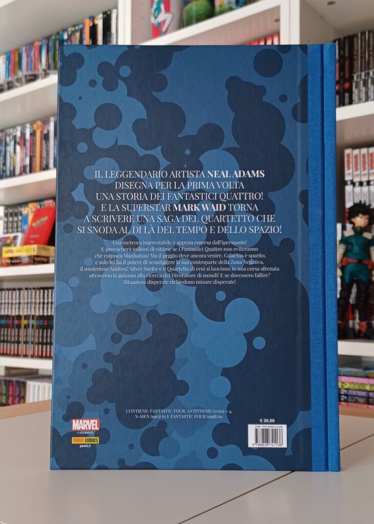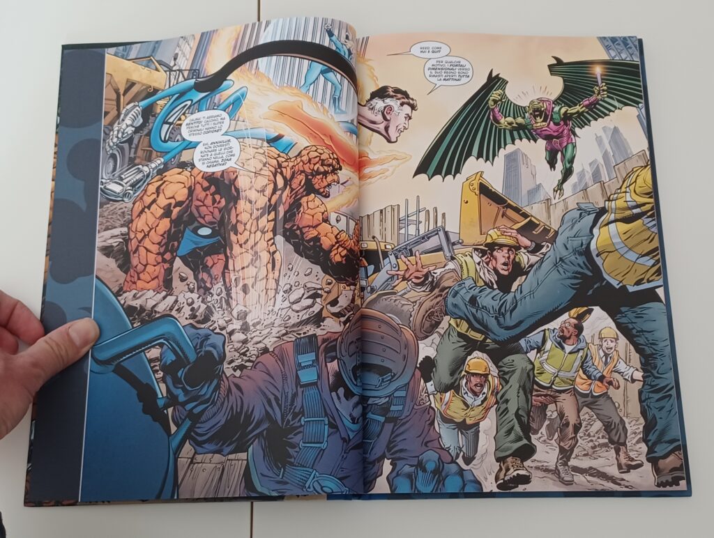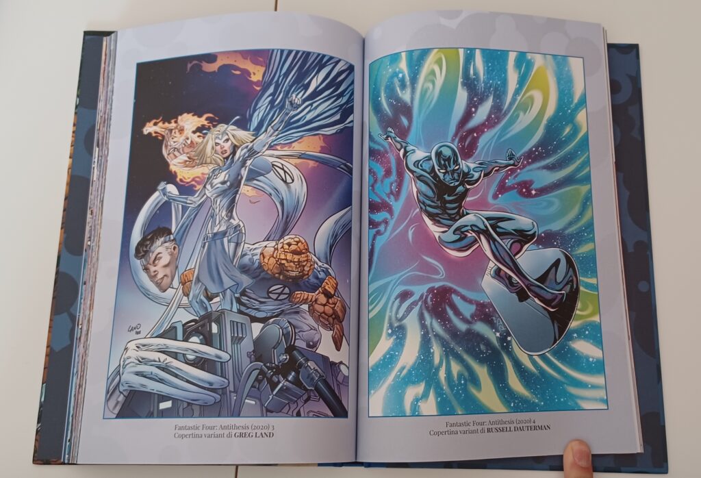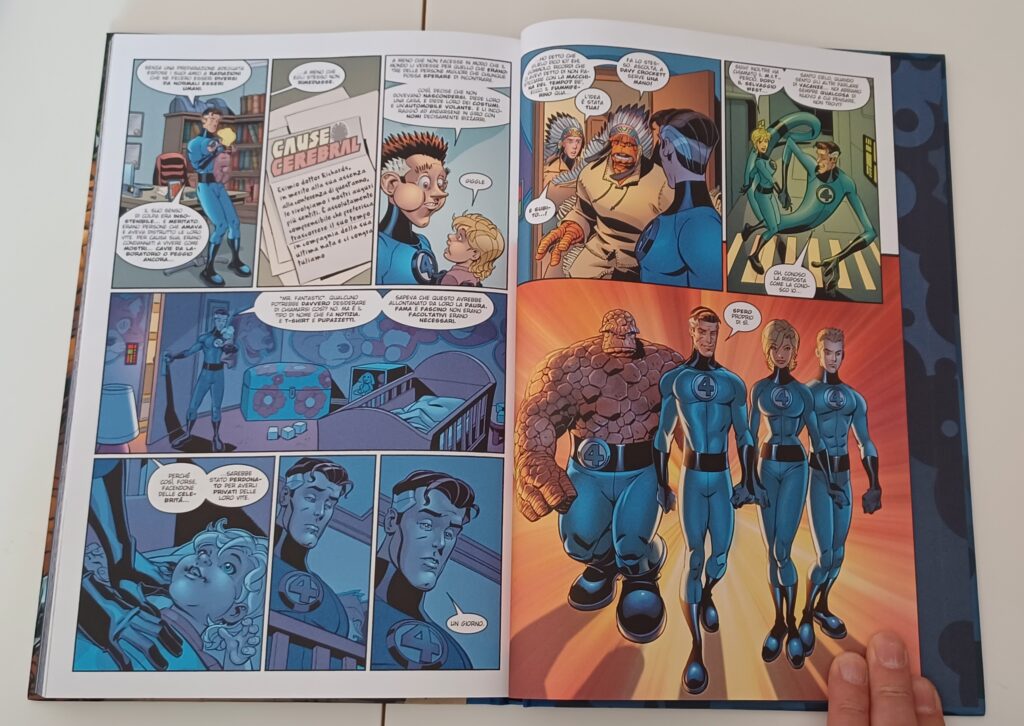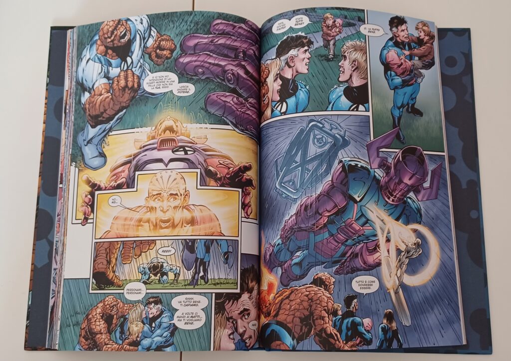 Ai testi della saga troviamo Mark Waid, autore di enorme spessore che conosce perfettamente i personaggi, avendo curato la testata del quartetto dal 2002 al 2005, il risultato è uno spettacolo visivo straordinario, un viaggio nella memoria del gruppo con nemici vecchi e nuovi, comprimari storici, pianeti alieni, beghe familiari e colpi di scena a ripetizione. Insomma tutto ciò che ha reso celebri i Fab Four nel corso degli anni. Completano il volume due episodi vintage dedicati ai due autori: il primo, del 1970, risale all’esperienza di Adams sulla testata degli X-Men, all’epoca in via di chiusura. il secondo, datato 2002, è la storia di esordio di Waid si Fantastic Four, insieme al compianto disegnatore Mike Wieringo.