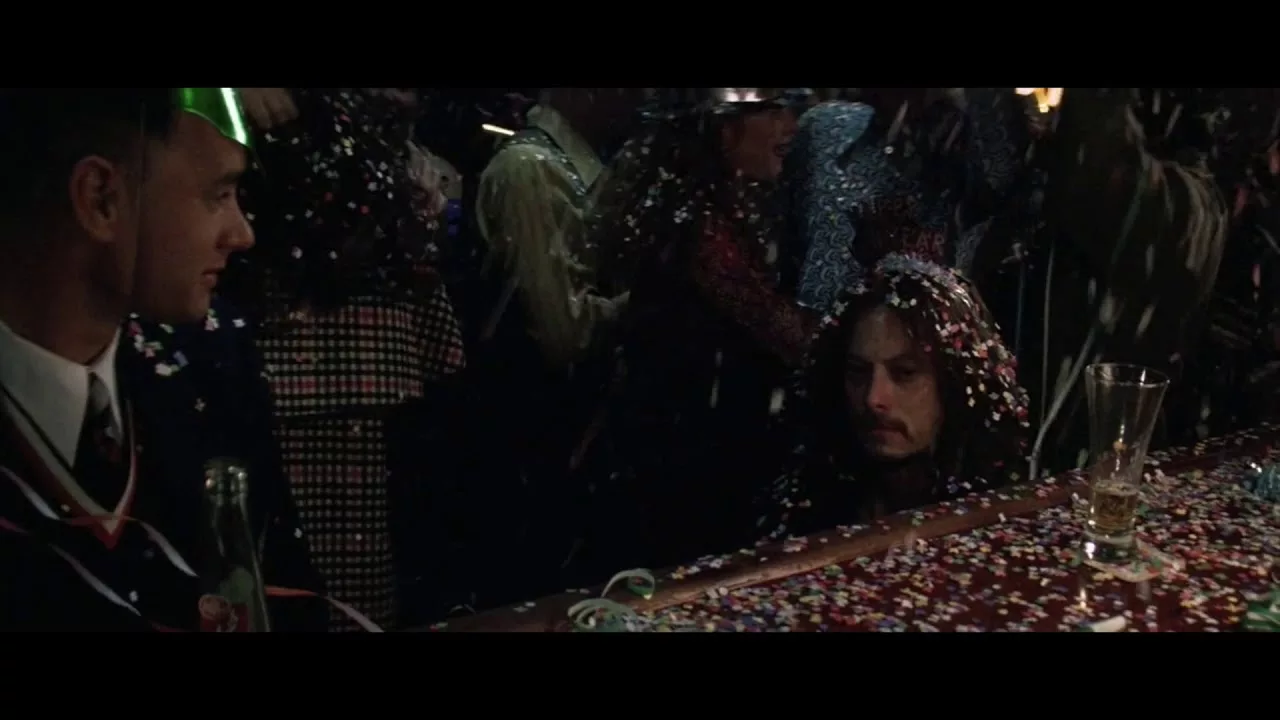Questa scena, ambientata in un bar di New York durante i festeggiamenti di Capodanno, cattura perfettamente le emozioni contrastanti di speranza e malinconia. Il tenente Dan, seduto accanto a Forrest, riflette sulle sue difficoltà personali e sul senso di perdita che prova dopo la guerra. Al contempo, la scena trasmette una profonda connessione tra i due personaggi e un messaggio di resilienza, speranza e nuovi inizi.