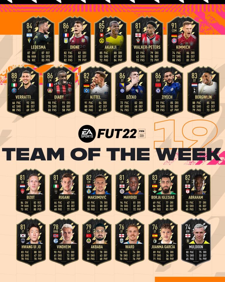 Ben ritrovati con l’appuntamento firmato EA Sports e FIFA 22, a sfondo FIFA Ultimate Team. La modalità più gettonata di sempre del simulatore presenta la selezione della settimana: il TOTW 19! EA lo annuncerà come sempre il mercoledì alle 19, e noi siamo qui appositamente per gustarlo insieme a voi. Ecco l’annuncio della software house canadese della diciannovesima selezione del Team of the Week. Qui vi proponiamo il link se volete rivedere quella della scorsa settimana!