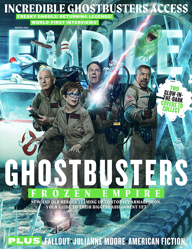 La rivista Empire ha pubblicato una nuova immagine dalla copertina del prossimo numero e mostra gli originali Ghostbusters – interpretati da Bill Murray , Dan Aykroyd, Ernie Hudson e Annie Potts – vestiti e pronti ad affrontare le ultime minacce. Puoi verificarlo tu stesso qui sotto.