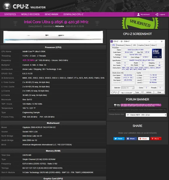 Gigabyte Technology, colosso indiscusso nel mondo delle schede madri, schede grafiche e soluzioni hardware, ha appena compiuto un’impresa incredibile. La loro ultima creazione, la scheda madre Z890 AORUS TACHYON ICE, abbinata al potentissimo processore Intel® Core Ultra™ (Serie 2), ha permesso al leggendario overclocker HiCookie di stabilire un nuovo record mondiale con una frequenza di DDR5-12752!
