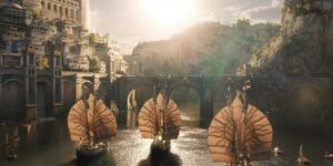 Gli Anelli del Potere mostra la Terra di Mezzo al suo apice di prosperità e pace e la prepara a una caduta nell’oscurità. L’episodio ha introdotto il pubblico nel regno dell’isola, Númenór, e ha dato vita al personaggio di Elendil, antenato di Aragorn. Inoltre, ha continuato a portare avanti la storia dell’elfo silvano Arondir e della sua prigionia da parte degli Orchi nelle Terre del Sud. Ogni elemento della storia ha dato l’impressione di fare grandi passi avanti e di essere più vicino a rivelare l’oscurità che si cela dietro gli angoli di ogni momento della storia.