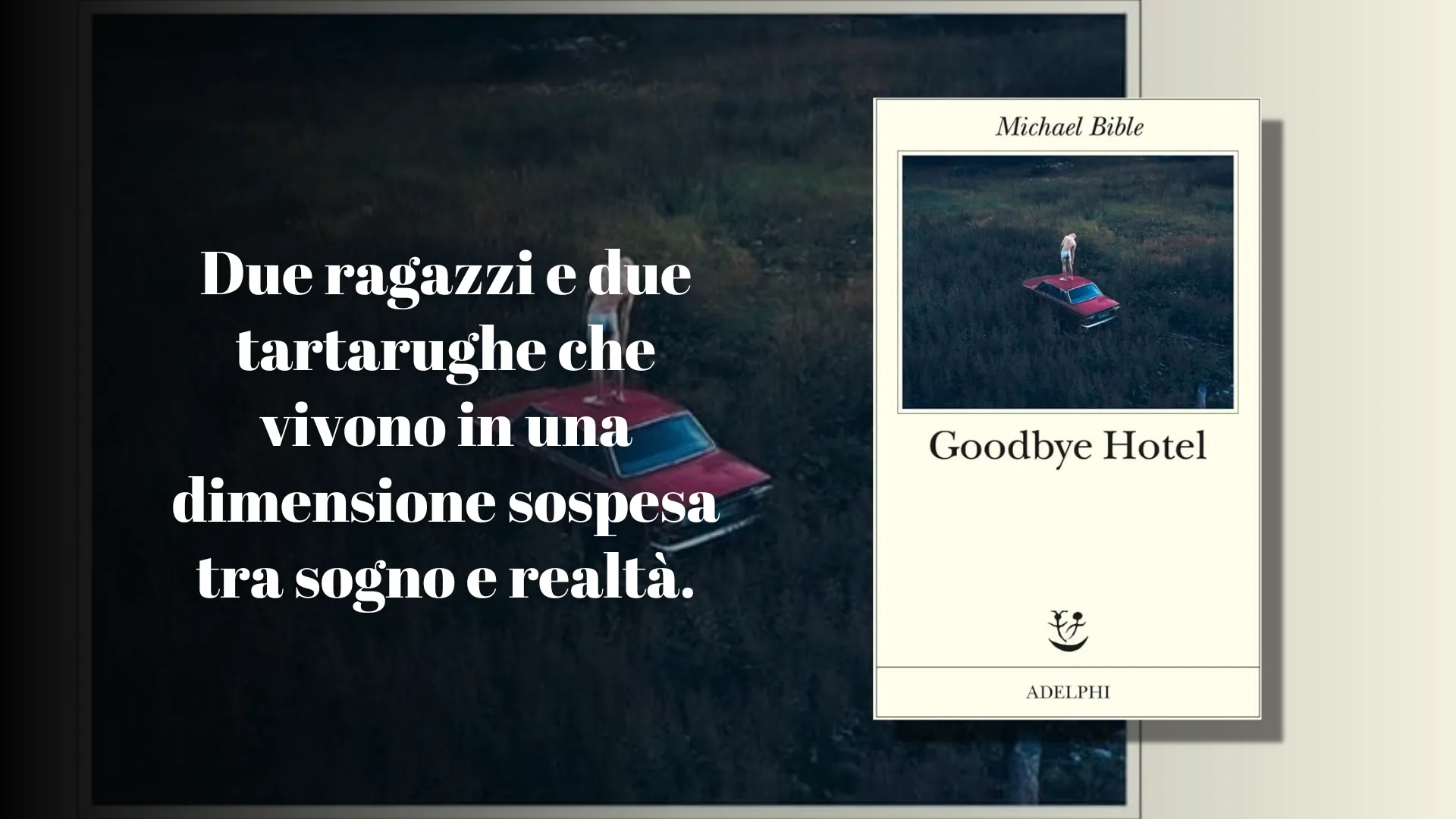 L’autore statunitense Michael Bible torna in libreria con il suo ultimo romanzo Goodbye Hotel, edito da Adelphi. In una piccola cittadina del North Carolina, la storia d’amore tra Eleanor e François s’intreccia con la vita di due tartarughe, in un tempo e spazio in cui tutte le cose possibili possono esistere contemporaneamente.