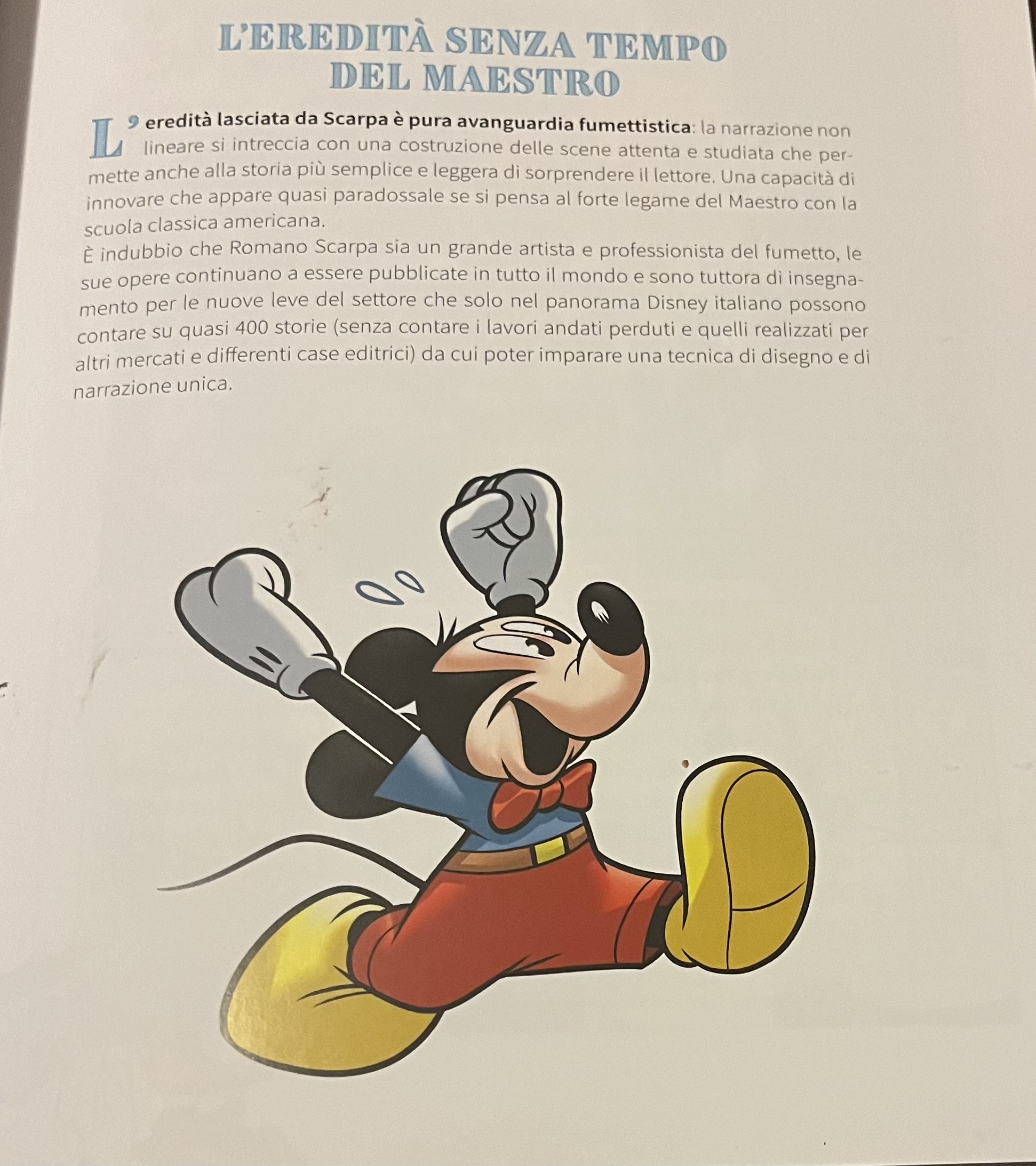 Difficile, difficilissimo forse, quasi impossibile racchiudere in un solo volume la genialità, lo spirito innovatore, la potenza narrativa di un così grande maestro Disney. Non è infatti un caso che la collana si sia aperta proprio con Romano Scarpa. Senza di lui infatti non esisterebbe la Disney Italia, che è senza dubbio una fucina di talenti e di storie riconosciute per la loro magnificenza al livello internazionale. Eppure questo volume ci prova attraverso una selezione di storie bellissime che almeno in parte provano a raccontarci dell’evoluzione stilistica e narrativa del maestro Romano Scarpa. Disegnatore, sceneggiatore e anche animatore, Scarpa è il Michelangelo della nona arte, capace di far sognare generazioni di lettori e di ispirare gli autori Disney venuti dopo di lui.