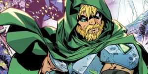 Rivelata nelle recenti sollecitazioni della DC per il maggio 2023, la copertina di Sean Izaakse per Green Arrow #2 mostra Oliver Queen che si aggira in un sottobosco colorato mentre un misterioso assalitore è in agguato dietro di lui. Freccia Verde ha abbandonato il suo solito cappuccio e la tuta per un mantello e un abbigliamento corazzato, con motivi a rete verde neon su braccia e gambe. La cosa più notevole è l’arco lungo di Freccia Verde, che è più tecnologico del solito e sembra proiettare un mirino da caccia.