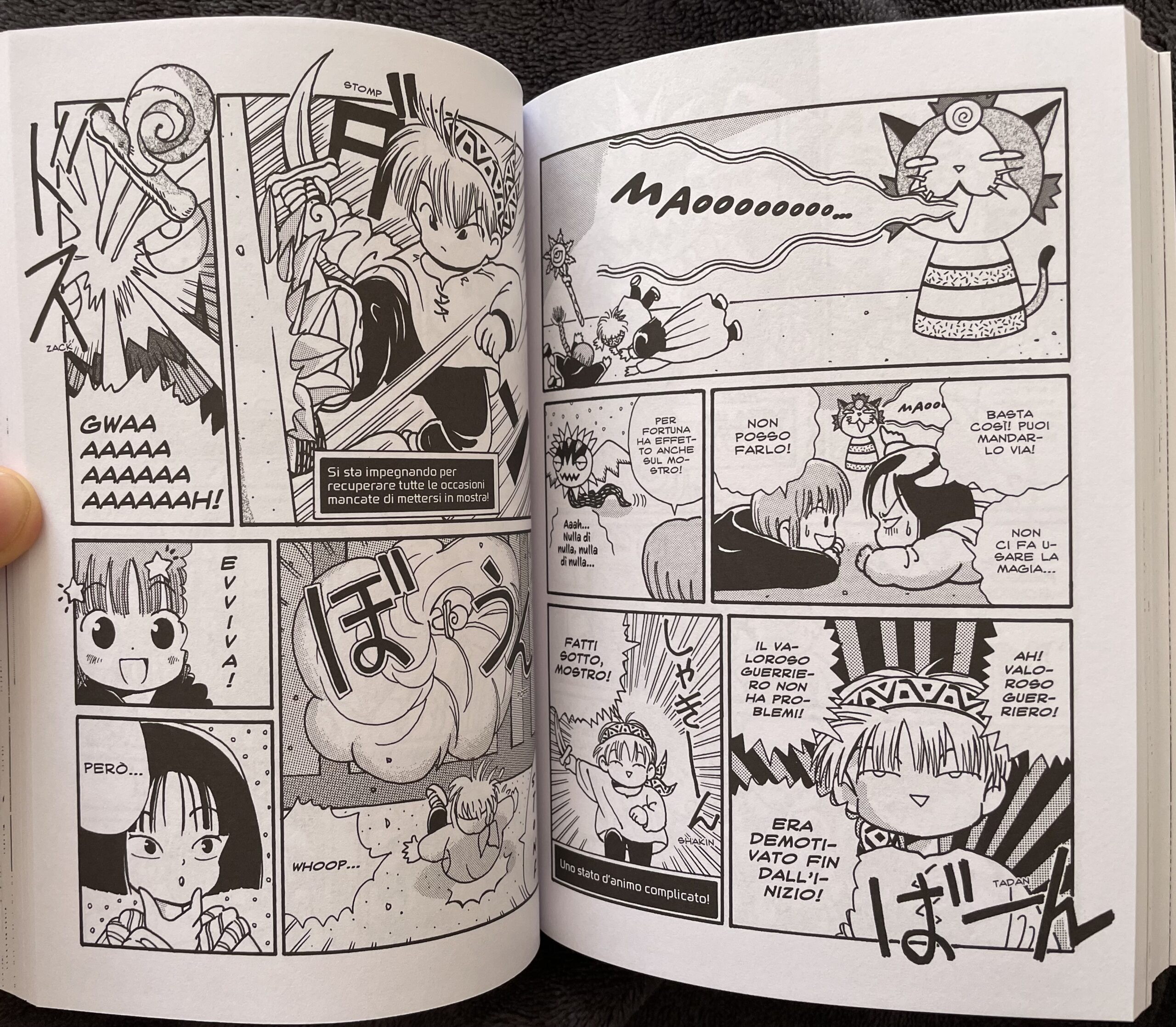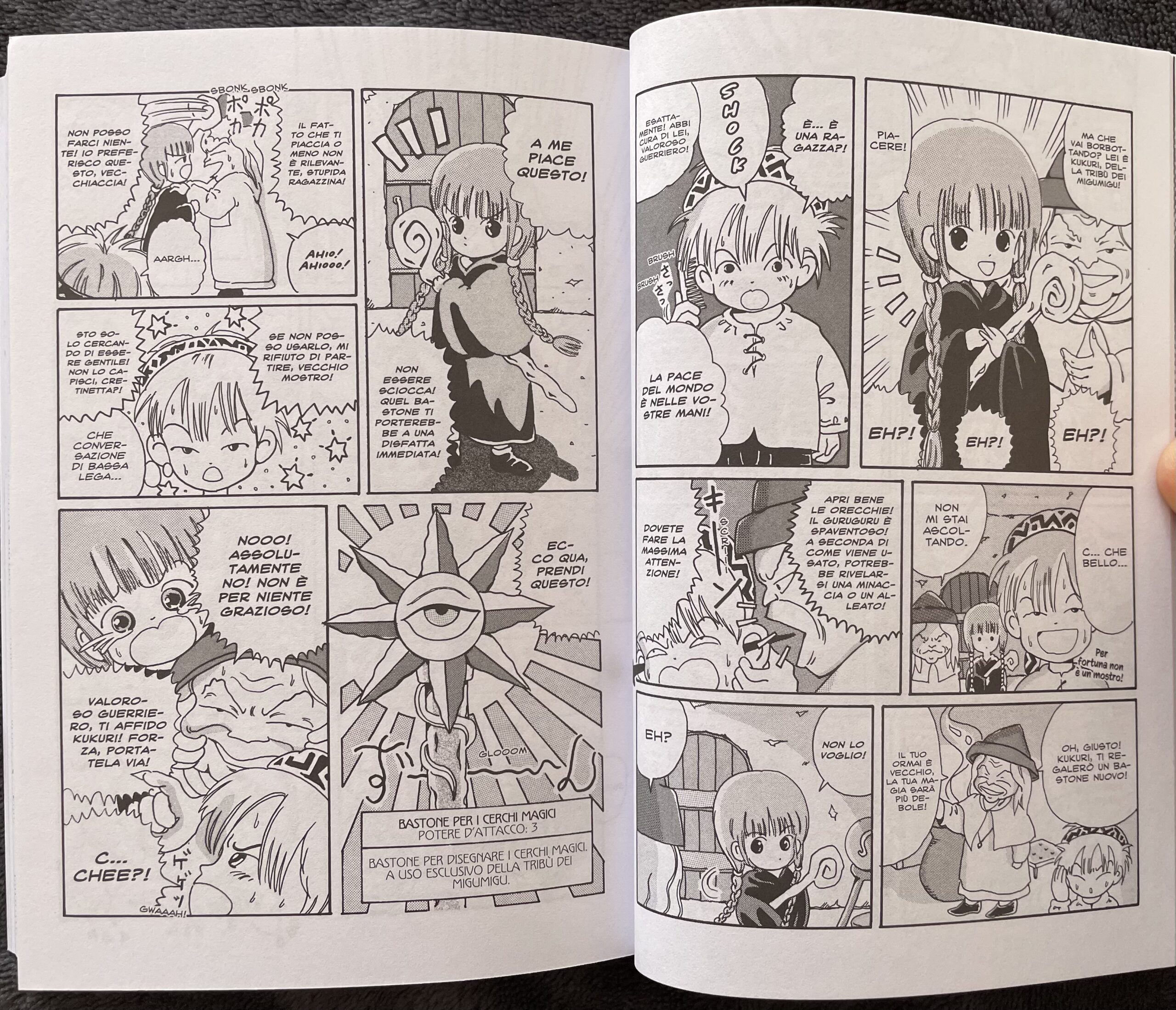 In un mondo di mistero e magia, una strega e un valoroso guerriero partiranno per un viaggio infinito e poi riusciranno a scoprire i segreti che ha…iniziava così la sigla italiana del primo anime di GuruGuru: Il girotondo della magia e qualcuno tra voi avrà letto queste parole cantandole. L’adattamento dell’omonimo manga di Hiroyuki Eto è rimasto nel cuore di tanti e tante (ed è stato seguito da altri anime, con l’ultimo uscito nel 2017), a differenza della controparte cartacea, pubblicata in Italia solo per qualche numero prima di essere interrotta. Per fortuna, J-Pop Manga ha pensato bene di riproporre quest’opera in una riedizione completa e ben curata, che permetterà a qualche lettore di rivivere le emozioni del passato e al pubblico più giovane di scoprire una storia che riesce a fondere perfettamente il fantasy e la commedia. Una parodia dei giochi di ruolo alla Dragon Quest, ma al tempo stesso un sentito omaggio a questo genere.