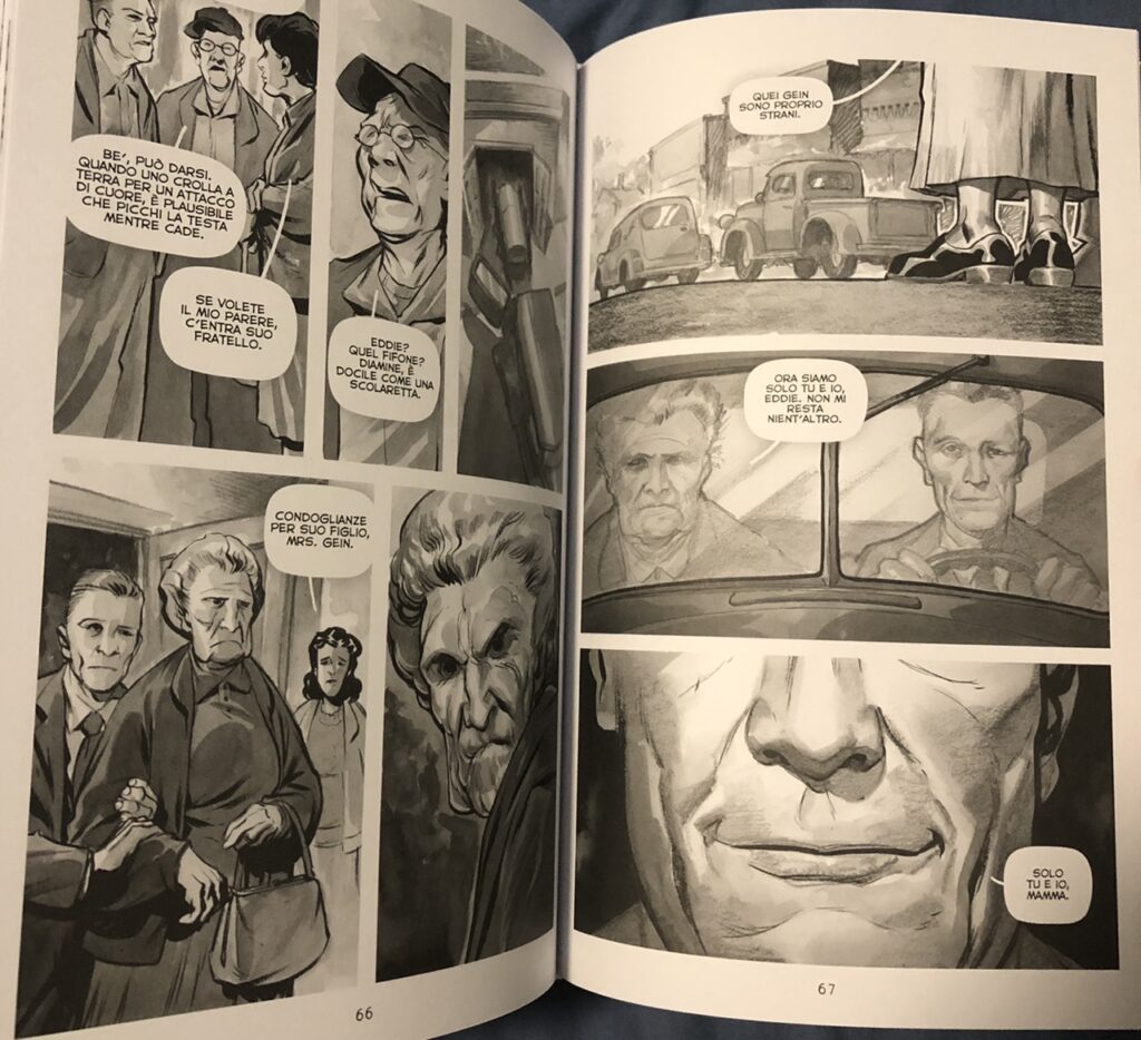 Ed Gein è sicuramente tra i killer più noti della storia americana. La sua vita ha ispirato alcuni celebri film horror come Psycho, Non Aprite quella Porta e Il Silenzio degli Innocenti. Harold Schechter ha raccontato la sua storia in “Hai Sentito che ha fatto Eddie Gein?”, disegnato da Eric Powell e pubblicato in Italia da Panini Comics.