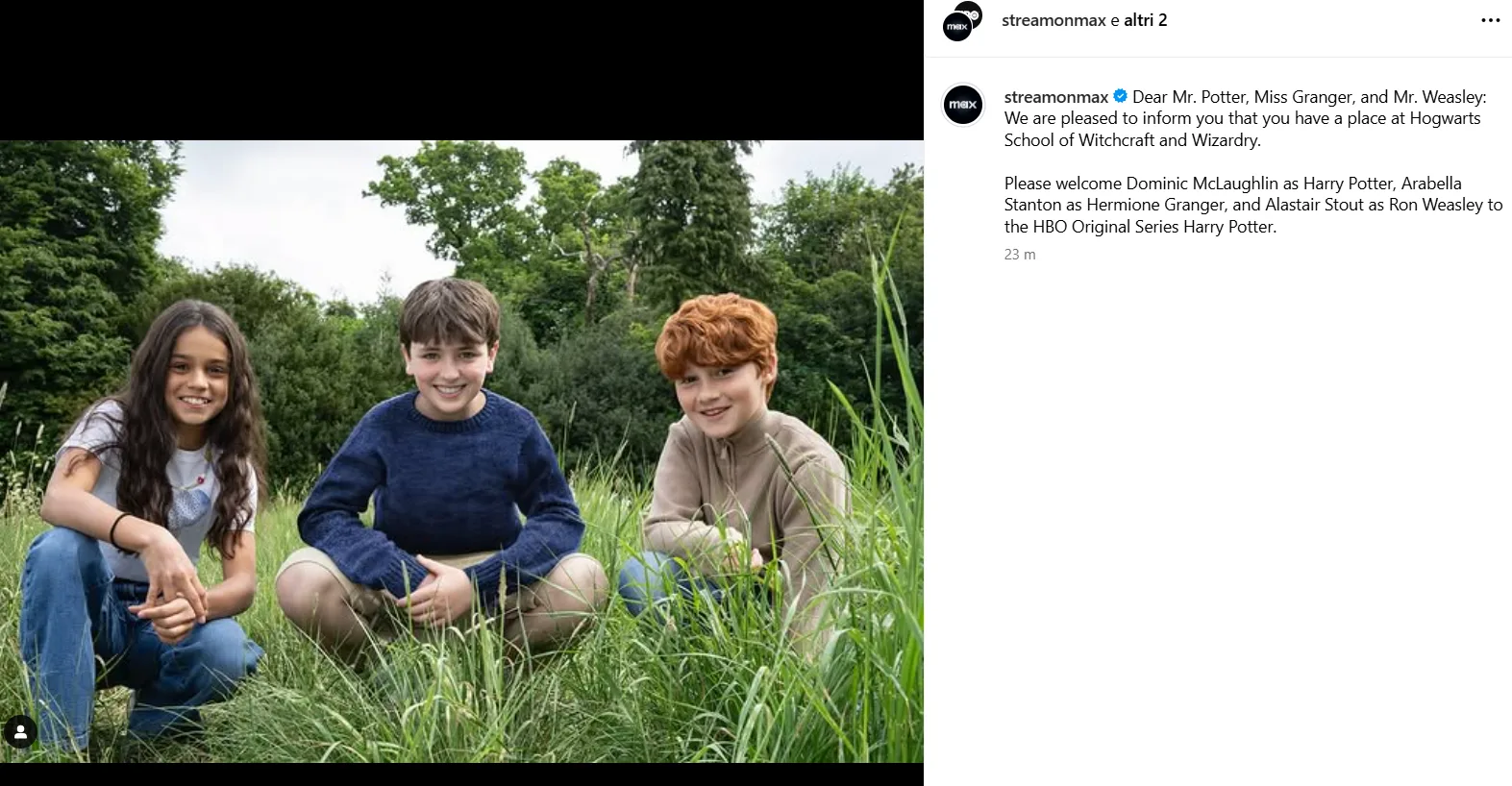 Con questo messaggio in un post su Instagram le pagine ufficiali HBO, Max (il suo servizio streaming) e la pagina di Harry Potter annunciano il cast più atteso della serie tv, quello del trio di maghetti più famosi del mondo della magia.