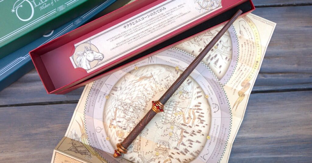 Ogni bacchetta originale del nuovo assortimento abbina un tipo di legno a una delle tre potenti anime preferite dal maestro costruttore di bacchette Garrick Ollivander della serie di film di Harry Potter, crine di unicorno, corde di cuore di drago e piume di fenice, ed è accompagnata da un inserto “wand lore” mai visto prima che illustra le proprietà specifiche di quella bacchetta e gli attributi del suo proprietario ideale. Gli ospiti possono anche usare le nuove bacchette per lanciare incantesimi e rivelare magiche sorprese con il giusto incantesimo e un leggero movimento del polso in luoghi selezionati all’interno degli spettacolari territori tematici”.