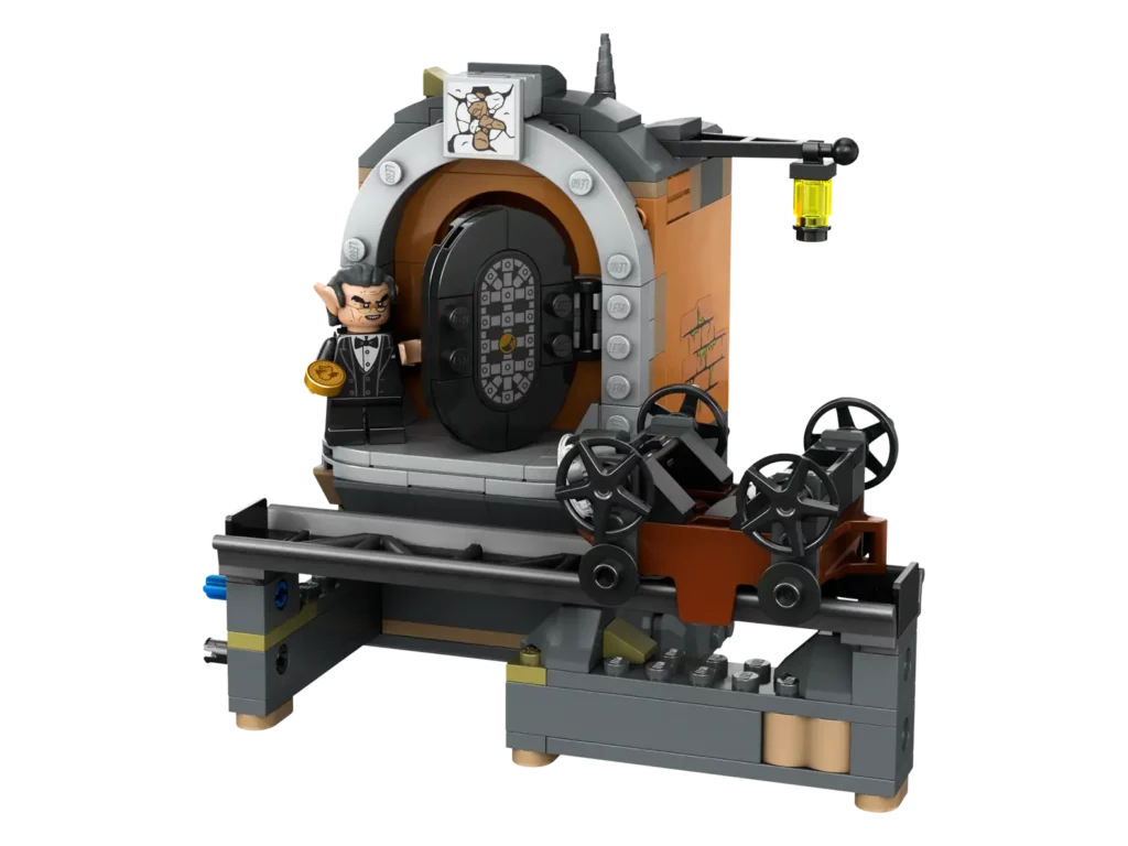 A proposito di minifigure, questo set ne include 13 tra cui: Harry Potter, Rubeus Hagrid, Ron Weasley, Bellatrix Lestrange, Hermione Granger, un Mangiamorte, due banchieri goblin e due guardie.