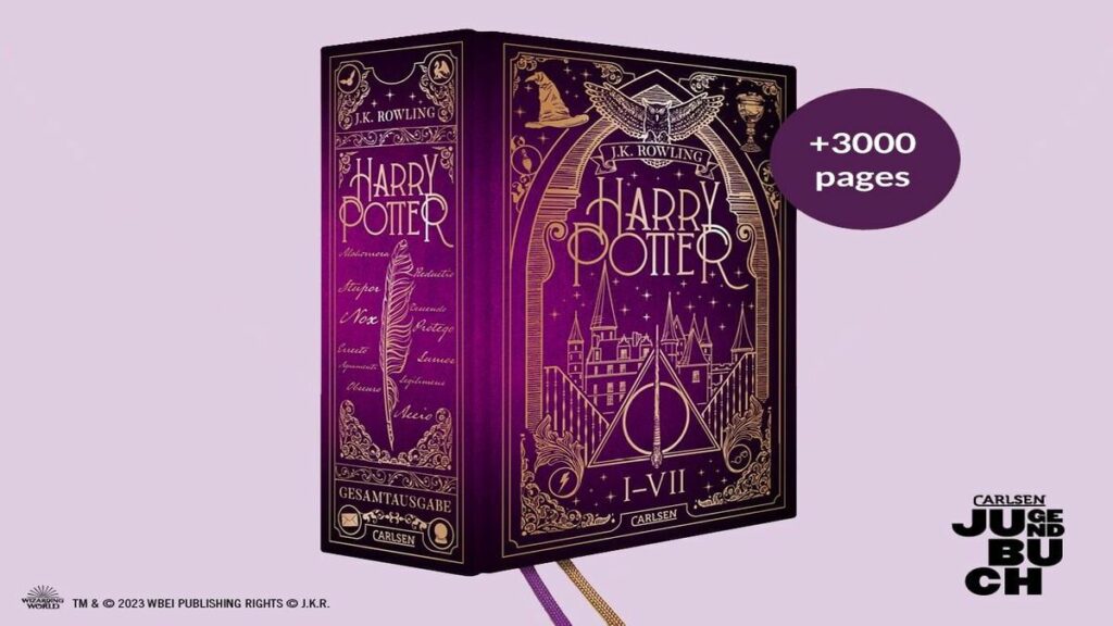 Oltre tremila pagine intervallate da grafiche e illustrazioni elaborate, racchiuse da una copertina rigida e riccamente decorata con foglie di bronzo. È la sorpresa che ha in serbo la casa editrice tedesca Carlsen per gli appassionati di tutte le età della fortunata saga fantasy Harry Potter, di Jk Rowling. Un’edizione straordinaria annunciata dalla casa editrice sul suo sito web per celebrare il venticinquesimo anniversario dell’uscita del primo volume, tradotto in tedesco.
