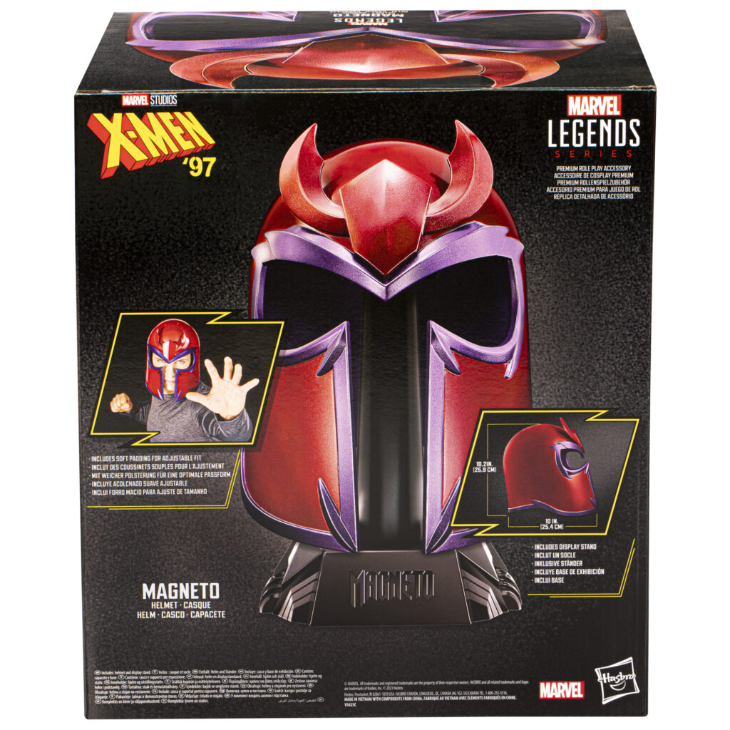 Il mutante Magneto, autoproclamatosi maestro del magnetismo, è il superstite di un genocidio che ha trascorso la sua vita a lottare per i meno fortunati. Marvel Legends è fiera di presentare questa riproduzione in scala 1:1 del casco di Magneto, così come appare nella serie animati degli X-Men. Dotato di dettagli e decorazioni fedeli alla serie, questo articolo per roleplay Marvel Legends è un’aggiunta essenziale per la tua collezione Marvel.