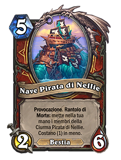 Prima: Provocazione. Rantolo di Morte: mette nella tua mano i membri della Ciurma Pirata di Nellie. Costano (1). → Ora: Provocazione. Rantolo di Morte: mette nella tua mano i membri della Ciurma Pirata di Nellie. Costano (1) in meno.