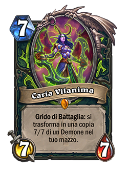 Prima: [Costo 6] 6 Attacco, 6 Salute. Grido di Battaglia: si trasforma in una copia 6/6 di un Demone nel tuo mazzo. → Ora: [Costo 7] 7 Attacco, 7 Salute. Grido di Battaglia: si trasforma in una copia 7/7 di un Demone nel tuo mazzo.