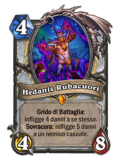 Il musicista leggendario del Sacerdote “Hedanis Rubacuori” una volta attivata Sovracura infliggerà 5 danni a un nemico casuale.