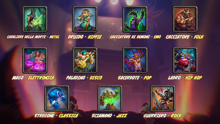 Il tema di questa espansione sarà la musica, con il Tauren E.T.C. che sta radunando i migliori musicisti di tutta Azeroth per organizzare il festival musicale più grande della storia. A ciascuna classe verrà assegnato un genere musicale che la rappresenterà nel design delle carte che verranno rilasciate. Ecco ogni classe con il genere associato: