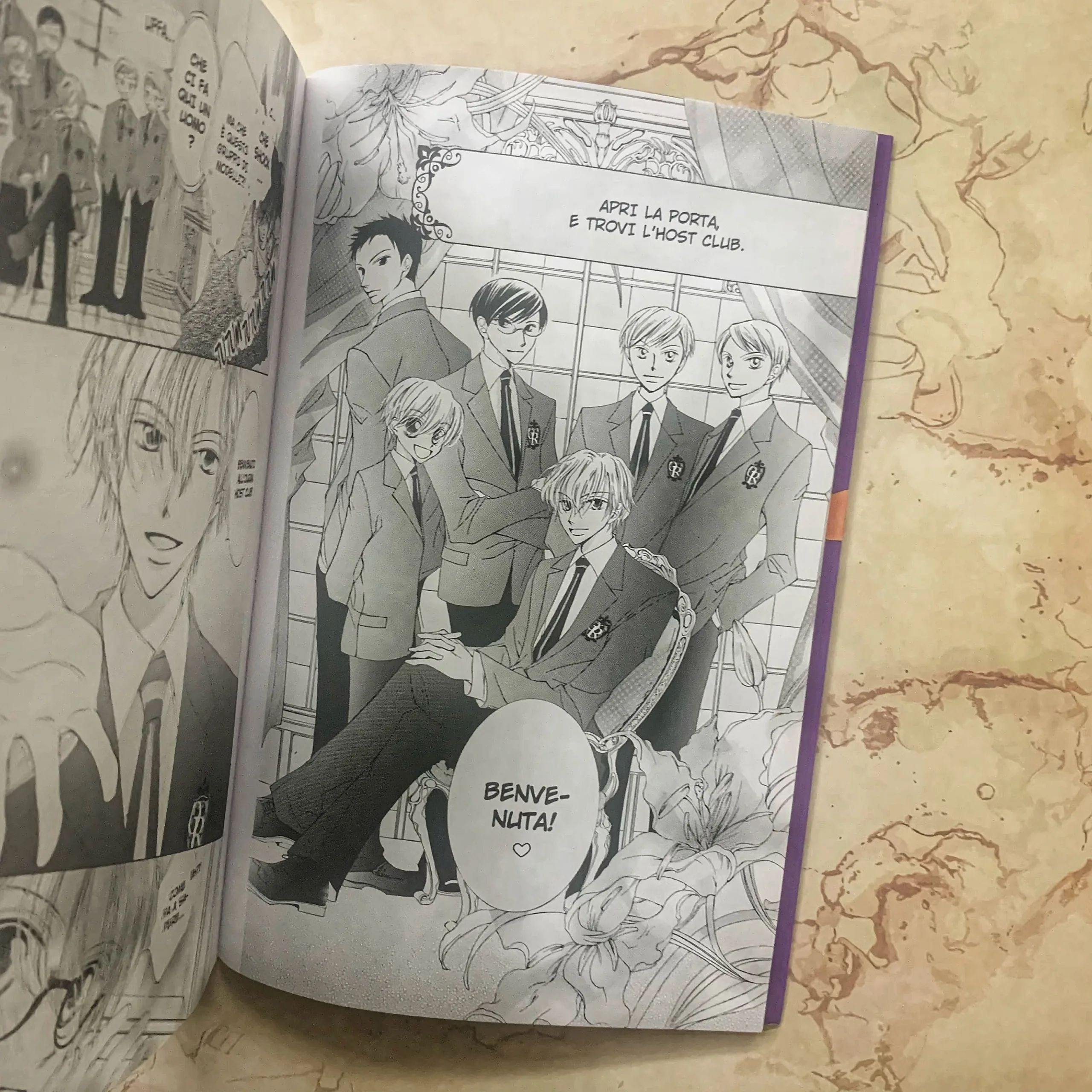 Al celebre Istituto privato Ouran c’è un aula molto particolare. Si tratta dell’aula di musica numero 3, all’ultimo piano dell’ala sud, alla fine del corridoio nord. Aprendo la porta di quell’aula ti trovi in un host club. Ebbene sì, sei giovani rampolli alleggeriscono le pesanti giornate delle studentesse con la loro compagnia, ricalcando quello che accade in un vero host club, alcool escluso. E una ragazza ha la possibilità di scegliere il suo preferito. Il freddo e glaciale Kyoya, scaltro manager del club, l’adorabile Honey che ama le cose carine e conquista tutti con la sua dolcezza, il gigante silenzioso e protettivo Mori, i gemelli Kaoru e Hikaru che fanno sospirare e urlare le ragazze con i loro comportamenti e frasi ambigue. E poi Tamaki, l’affascinante leader del gruppo che non sa come funziona il mondo ma sa come conquistare una delicata fanciulla. O forse no…