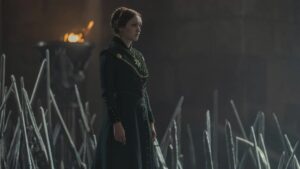 Alicent raggiunge Aegon prima di Otto e gli dice che non ha intenzione di uccidere Rhaenyra e la sua famiglia, una decisione che Otto ovviamente non condivide. Ma al momento non ha il controllo. Alicent incontra poi Larys, che la informa dell’esistenza di una rete di spie in tutto Approdo del Re e all’interno della Fortezza Rossa, tra cui la sua governante, Talia. Le dice che l’unico modo per risolvere il problema è tagliarlo alla fonte, il che significa che Verme Bianco deve essere ucciso.