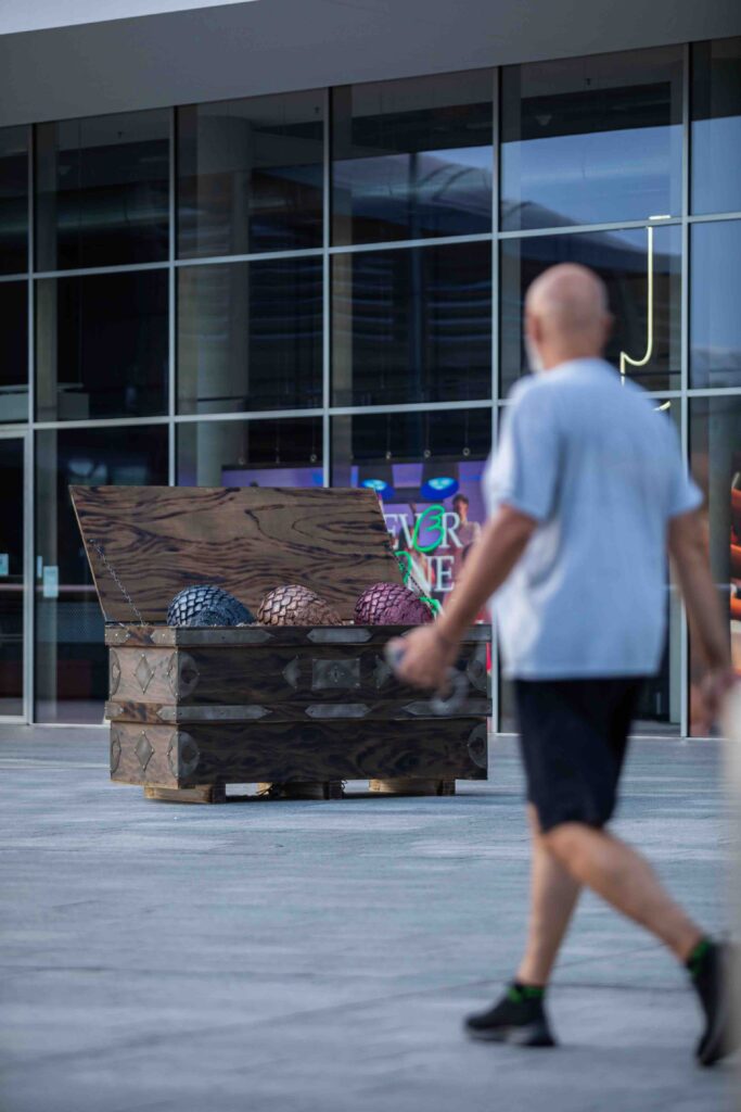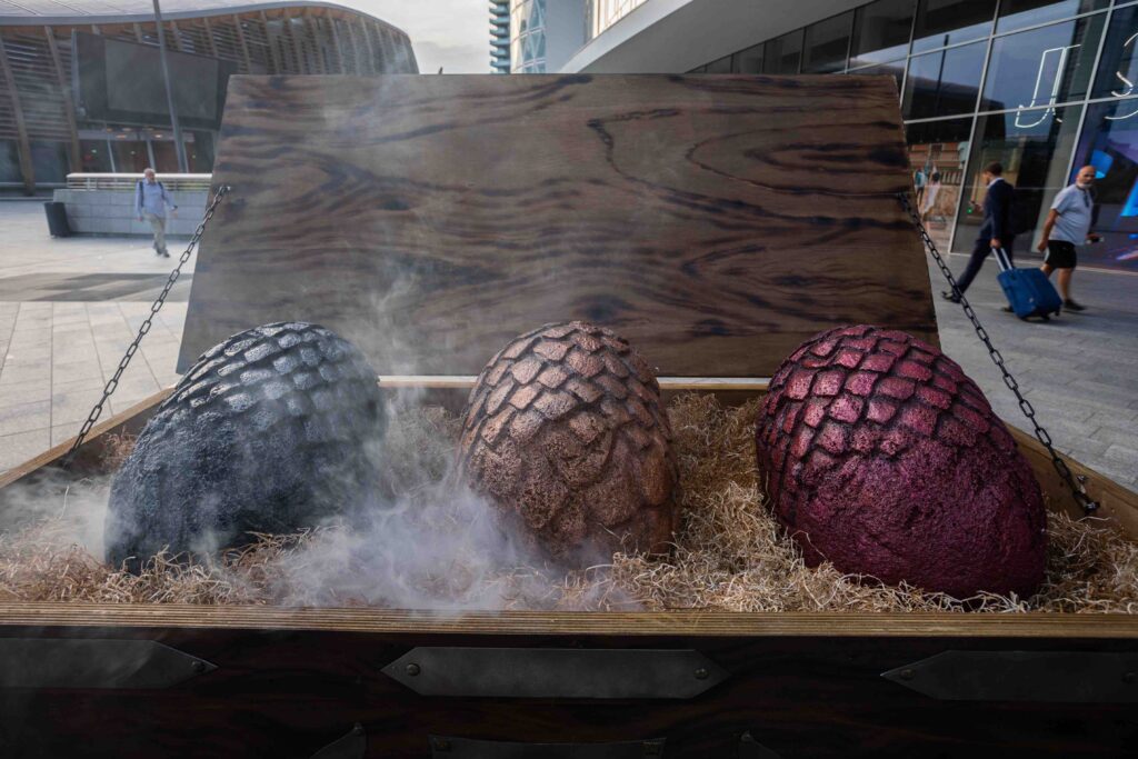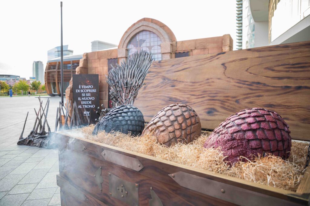 Da questa mattina, accanto a quelle uova, c’è una nuova versione più antica e possente del leggendario Trono di Spade, dove ogni fan potrà sedersi e dimostrarsi degno di ereditare il potere sui Sette Regni.