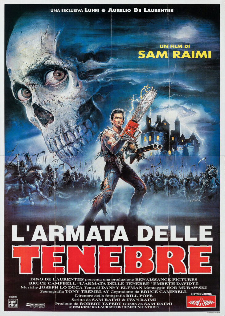 L’armata delle tenebre è un film comedy horror del 1992, diretto da Sam Raimi, con Bruce Campbell e Embeth Davidtz. Terzo capitolo della saga horror de La Casa, la storia riprende dalla fine del secondo episodio, quando il protagonista Ash (Bruce Campbell) apre un portale e finisce indietro nel tempo, precisamente nel 1300. Qui viene catturato da Lord Arthur (Marcus Gilbert), un signore feudale che lo crede una spia del suo nemico Enrico il Rosso (Richard Grove).